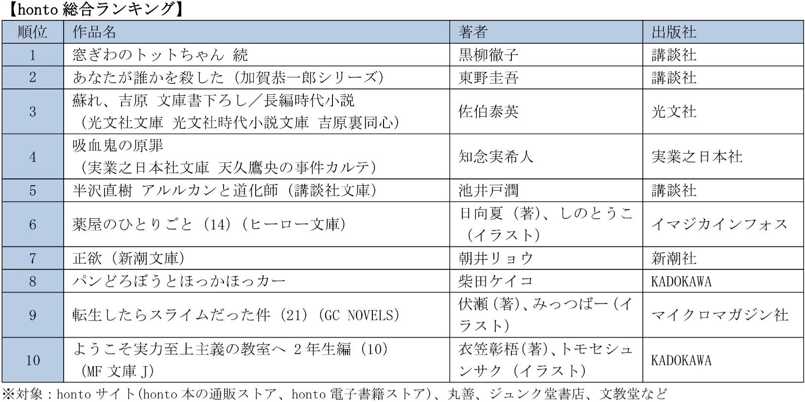 2023年10月ランキングについてハイブリッド型総合書店honto広報担当が解説