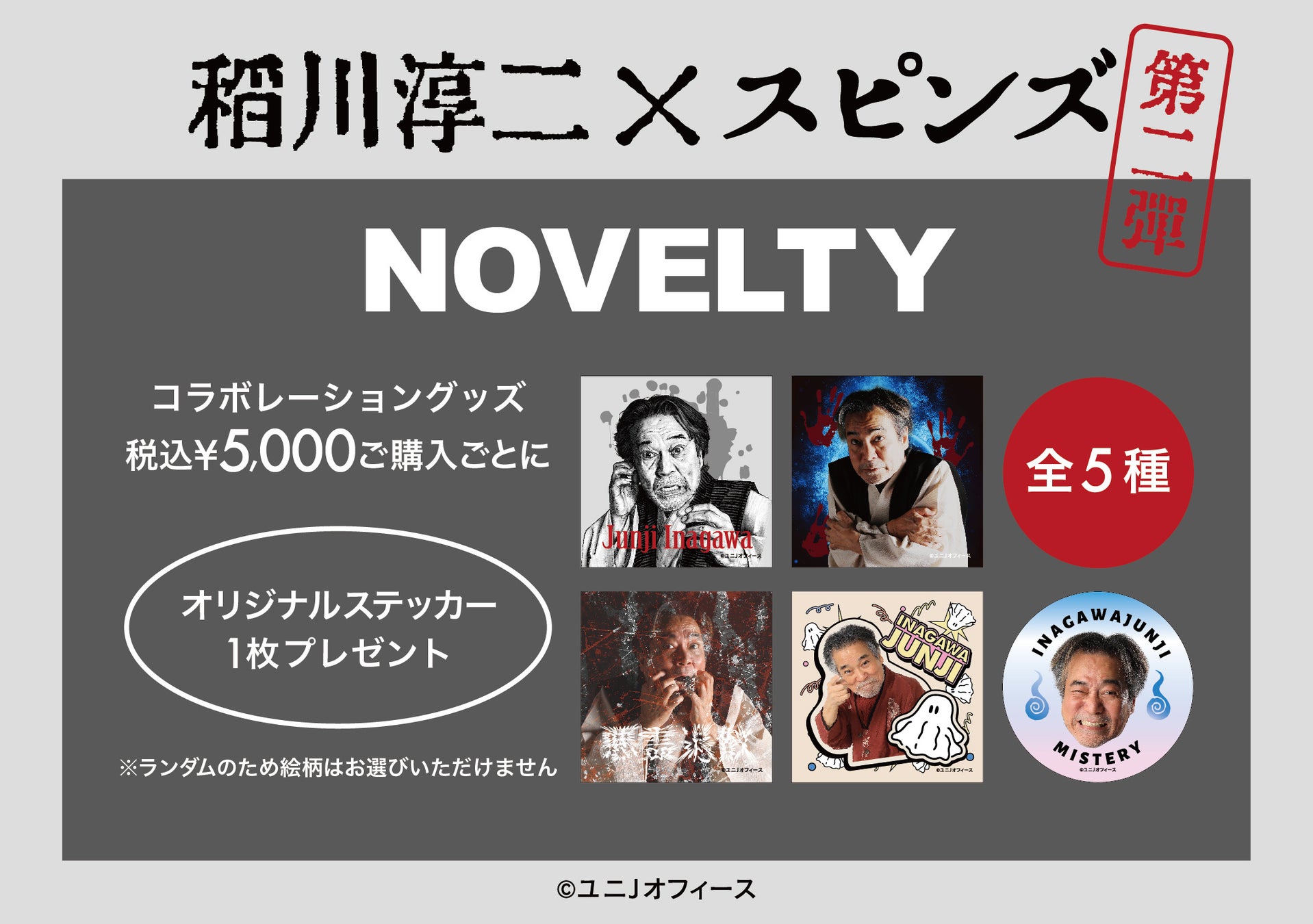・SPINNS対象店舗/公式通販共通…稲川淳二×SPINNSコラボレーショングッズ税込5,000円毎お買い上げで1枚ステッカーをプレゼント。
