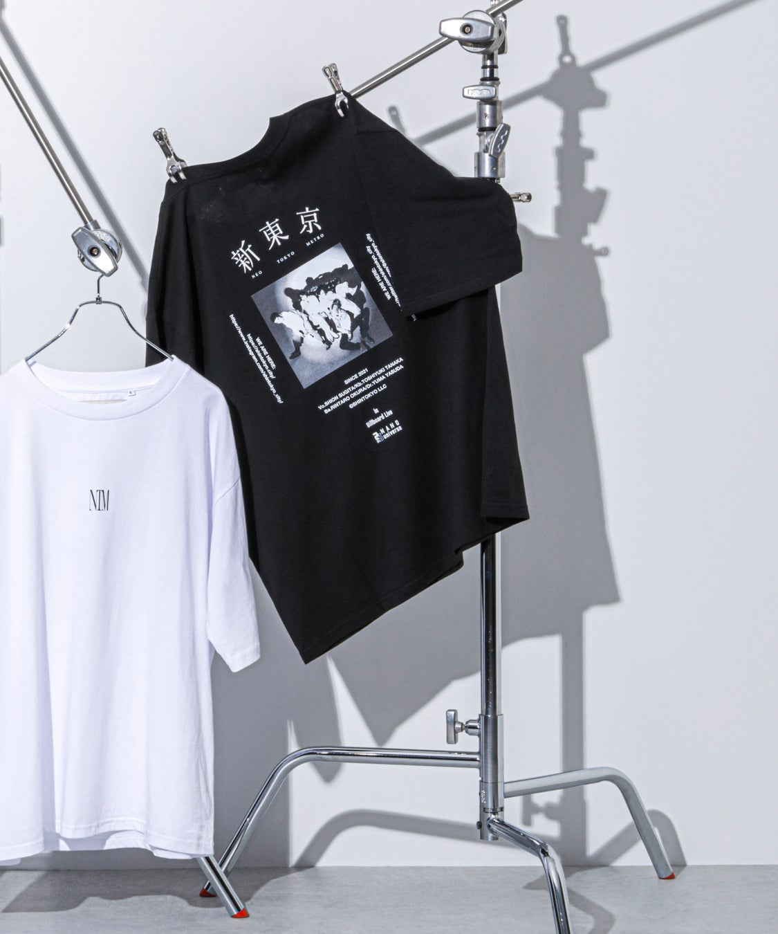 新東京コメント:フロント部分の中央にシンボルの"NTM"を配置し、レイヤードしてもさりげない存在感があるデザインにしました。バックプリントは新東京のアー写やナノユニバースのロゴなどが散りばめられた、古着の企業Tシャツのようなデザインが特徴的です。ゆったりとしたサイズ感も相まって、使いやすくも1枚でサマになるTシャツです。