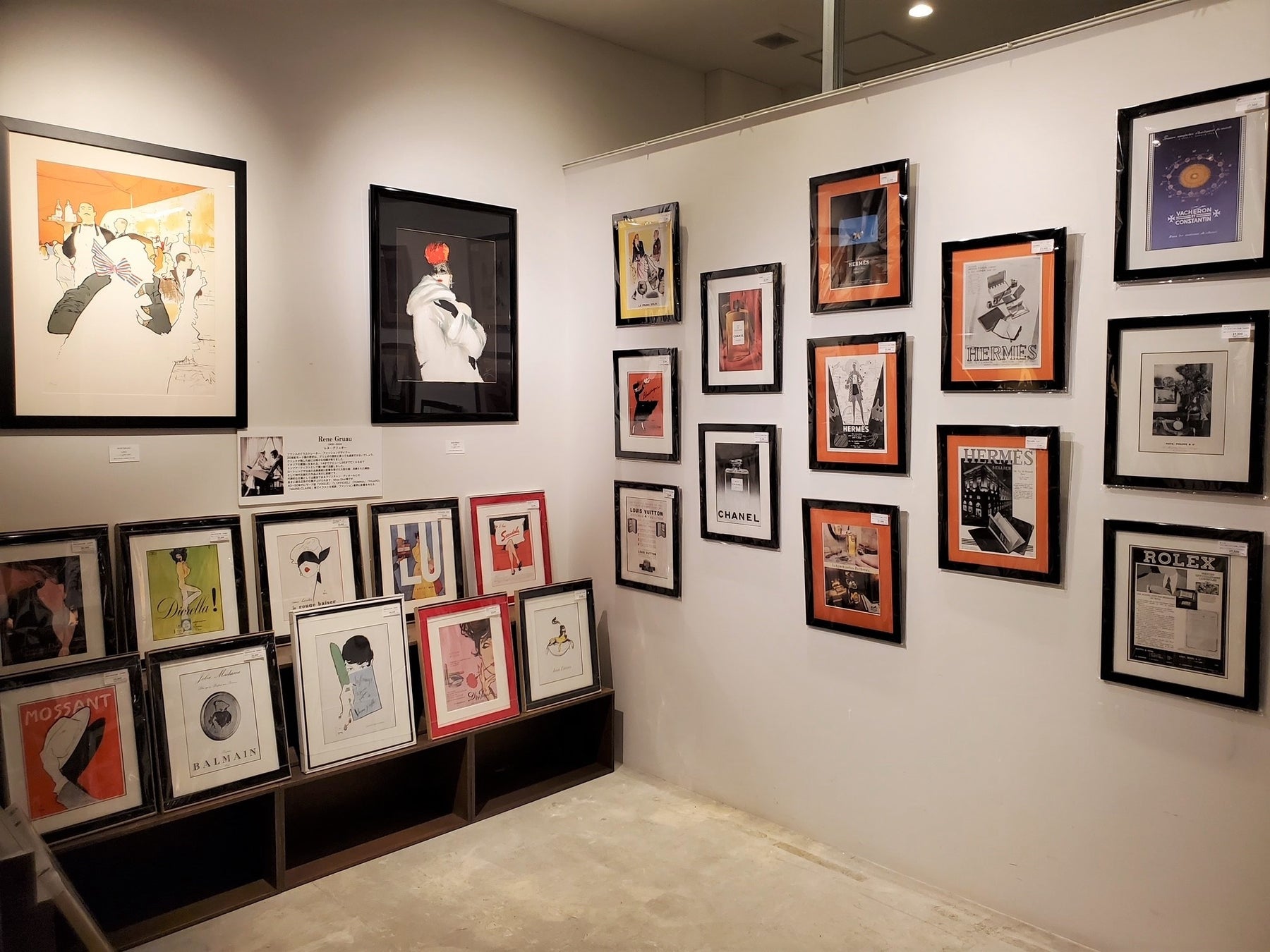 ルイヴィトンのポスターを手掛け、世界を代表するモダンアートの巨匠であるRAZZIAと、ファッションイラストレーターとして世界的に活躍したRene Gruauのリトグラフやポスターを中心に、ユーロデコが展開する1920~1970年代のフランスのヴィンテージ広告など約50種類を展示・販売します。