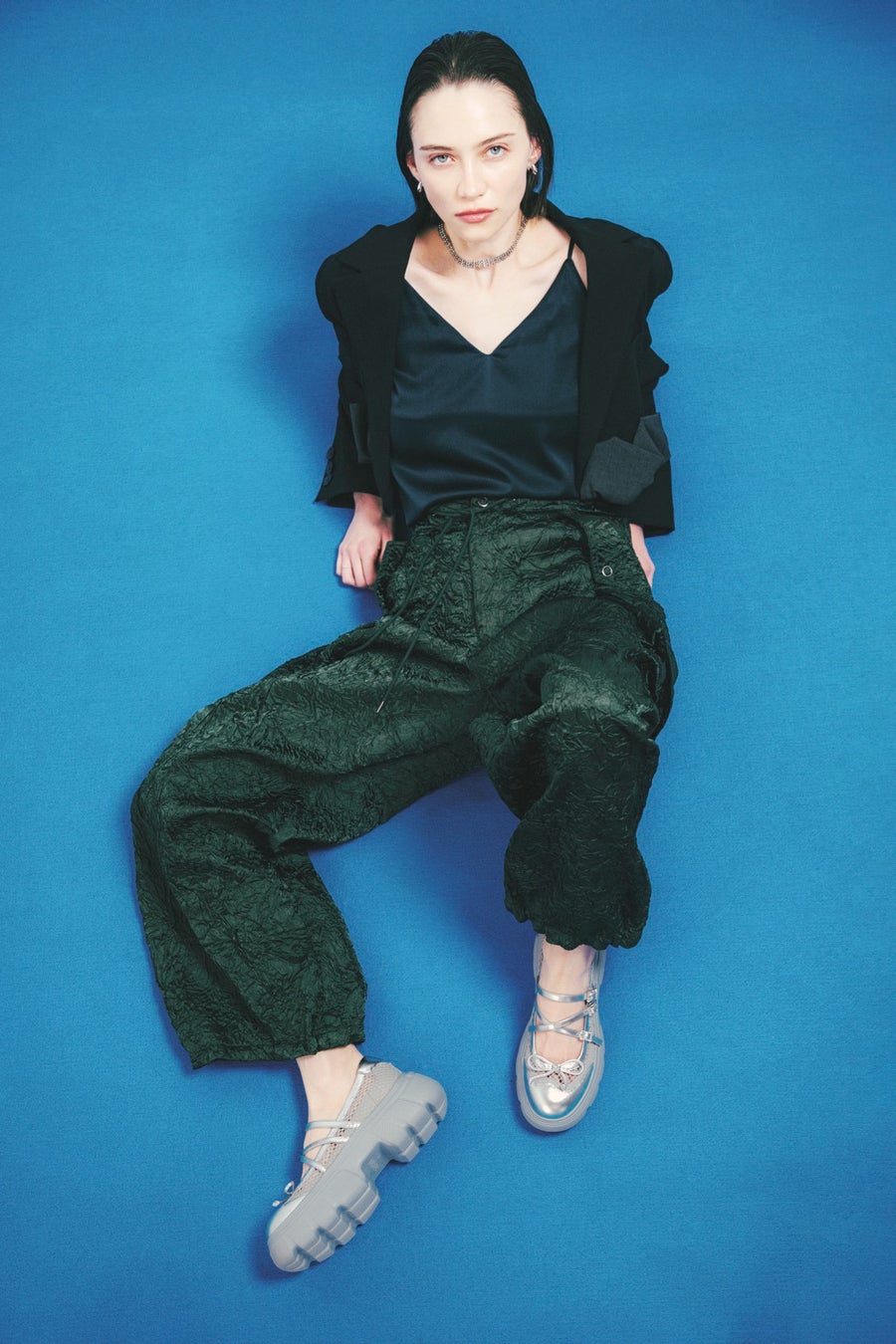 モードかつトレンド感満載なスニーカーで、足元から感度高めなスタイリングに。