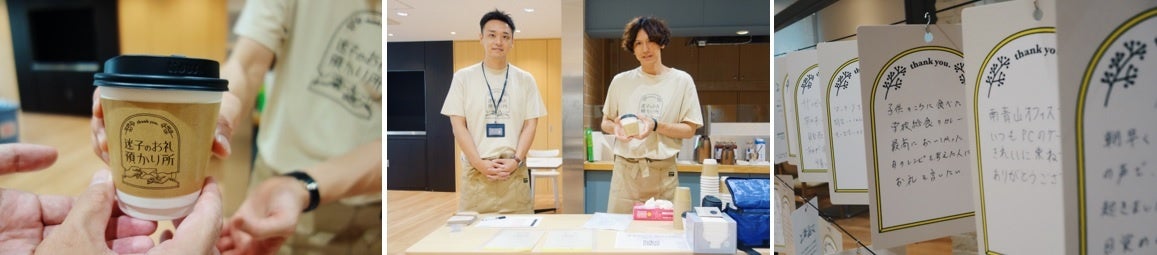 今回の出店に先立ち、パーソル南青山ビル(パーソルホールディングス本社)内にて「迷子のお礼預り所」カフェをテスト実施しました。3日間の営業では217件のお礼が社内から集まりました。