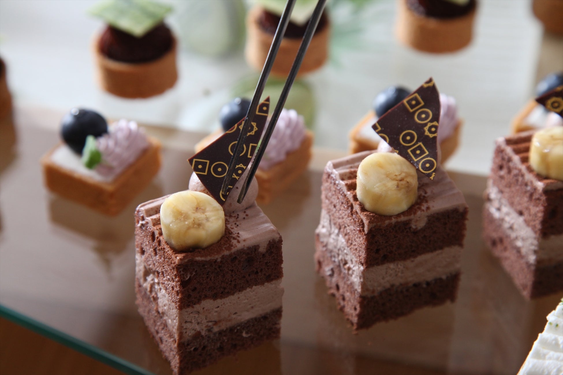 チョコレートバナナショートケーキ / 抹茶ロールケーキ / 豆乳抹茶スフレチーズケーキ/ チョコキャラメルミルフィーユ / 抹茶オペラ / ブルーベリーレアチーズケーキ / 抹茶マカロン / ブルーベリーマフィン / クネルショコラエピス / 抹茶ショコラカップ / ブルーベリータルトレット / 抹茶ティラミス / ほうじ茶プリン / ブルーベリージュレ / 豆カン / 抹茶アイスクリーム / ブルーベリーヨーグルトソルベ / パリパリチョコアイス / ミルクジェラート