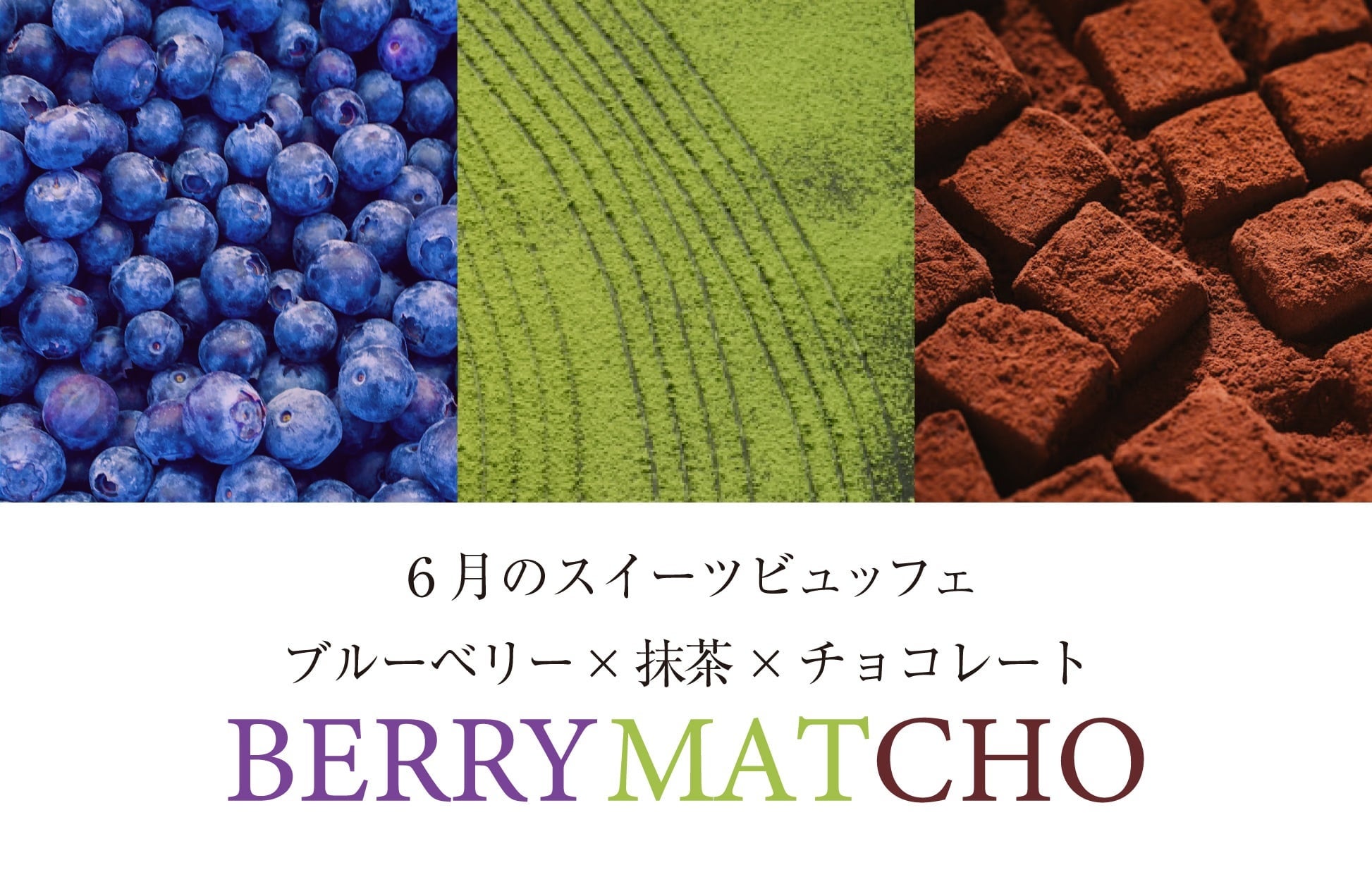 ■6月限定開催スイーツビュッフェ「BERRY MATCHO(ベリーマッチョ)」ブルーベリー・抹茶・チョコレートの饗宴!初夏のご褒美スィーツビュッフェ