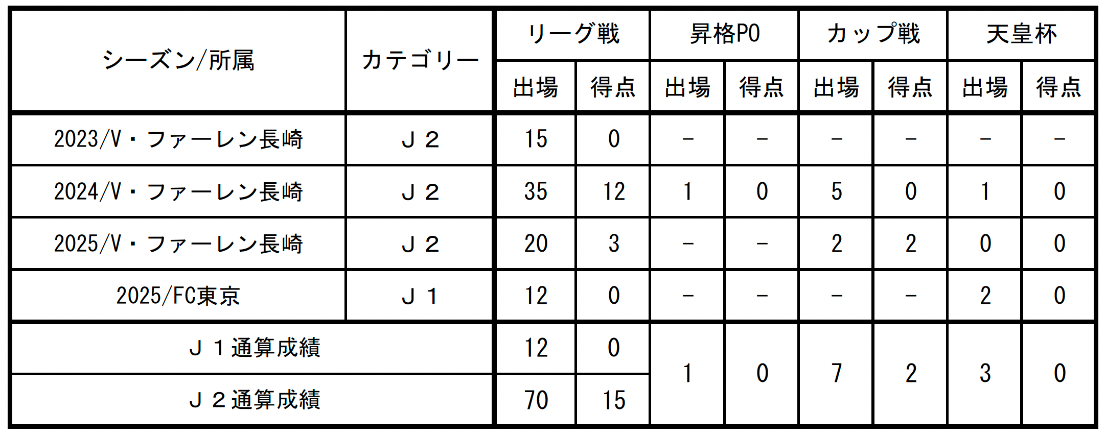 □出場記録(2025シーズン終了時点/Jリーグ所属時のみ)