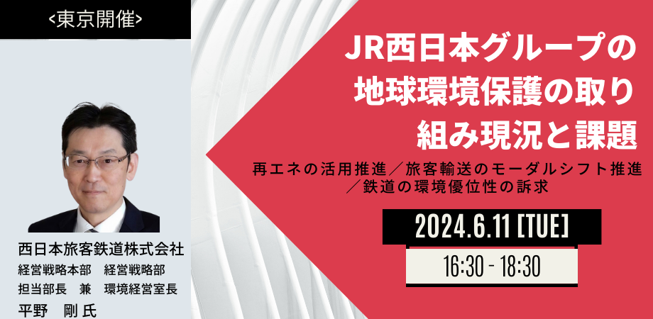 【JPIセミナー】「JR西日本グループの地球環境保護の取り組み現況と課題」6月11日(火)<東京開催>