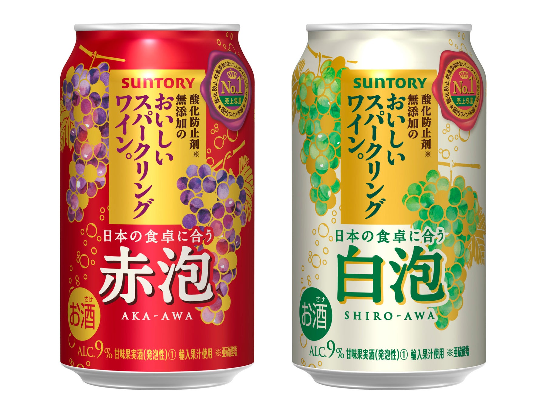 サントリー(株)は、「酸化防止剤無添加※1のおいしいスパークリングワイン。赤泡」「同 白泡」2種を9月26日(火)から全国で新発売します。