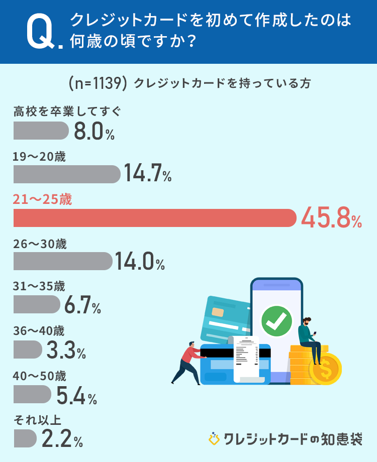 また、クレジットカードを初めて作成したのは何歳の頃か聞いてみました。