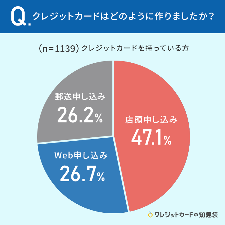 47.1%が「店頭申し込み」でクレジットカードを申し込んだと回答しています。