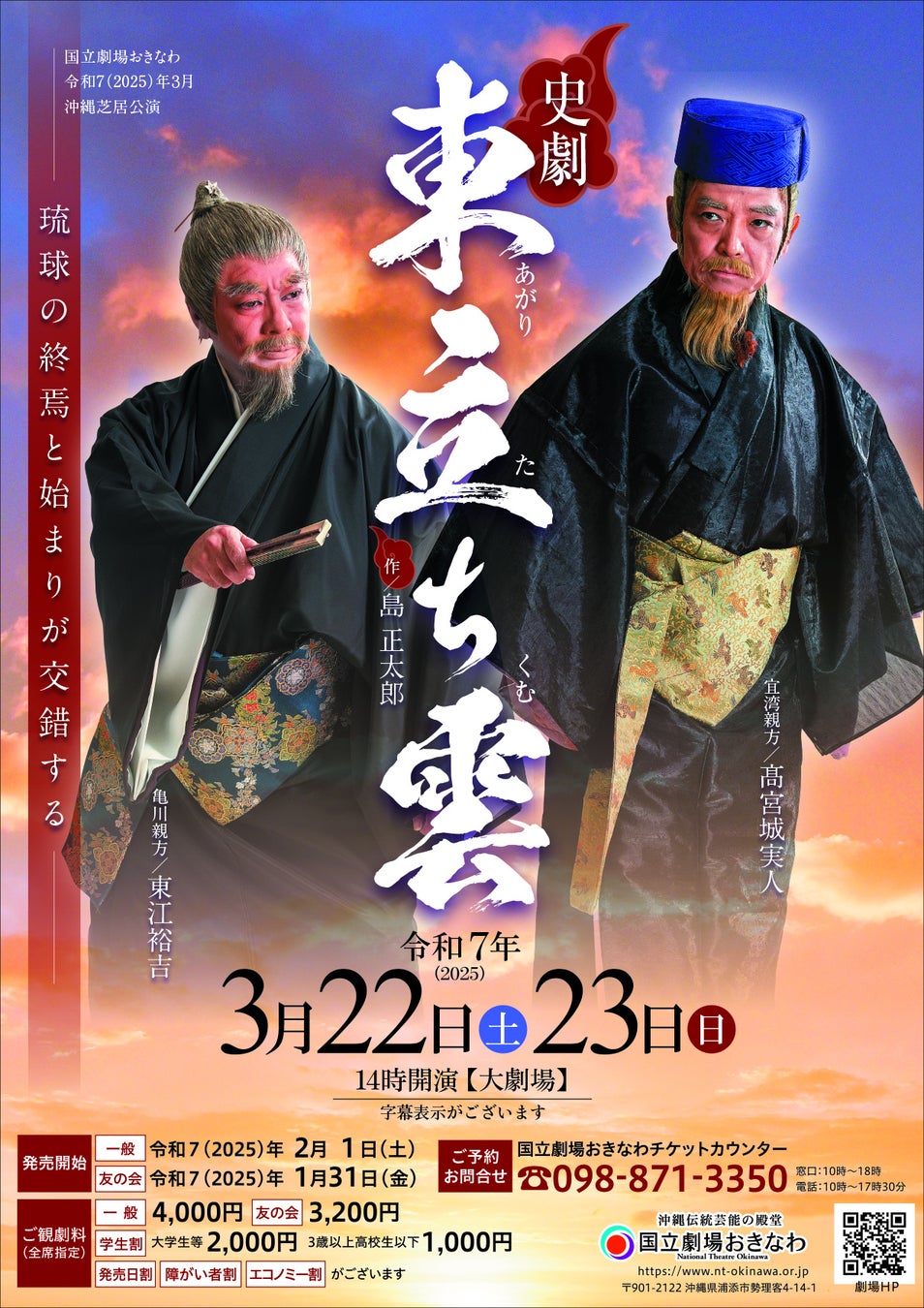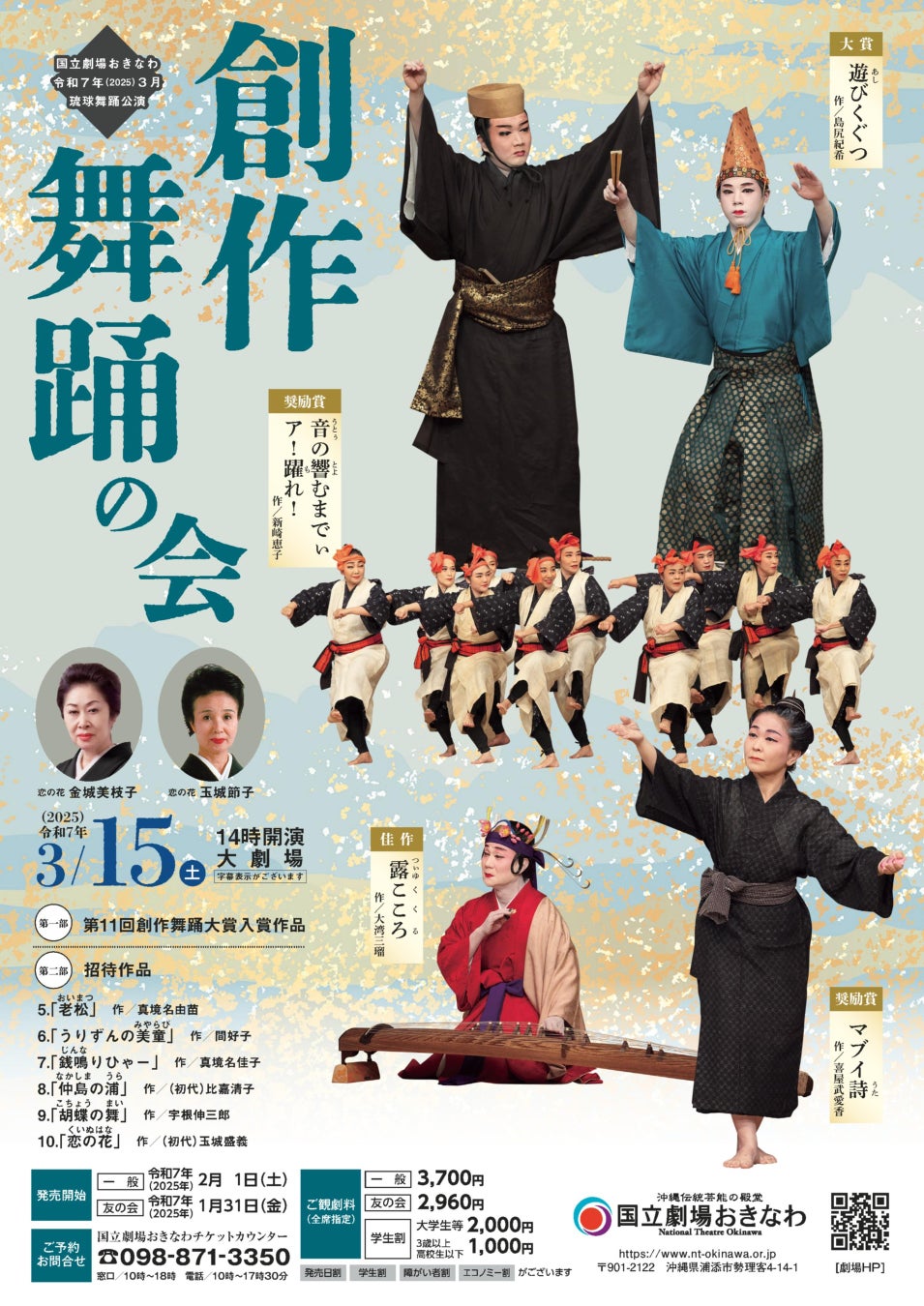 「第11回創作舞踊大賞」大賞受賞作や名人達による舞踊作品を上演する「創作舞踊の会」と現在活躍する沖縄芝居の人気役者らによる琉球王国時代末期を描いた史劇「東立ち雲」のご案内
