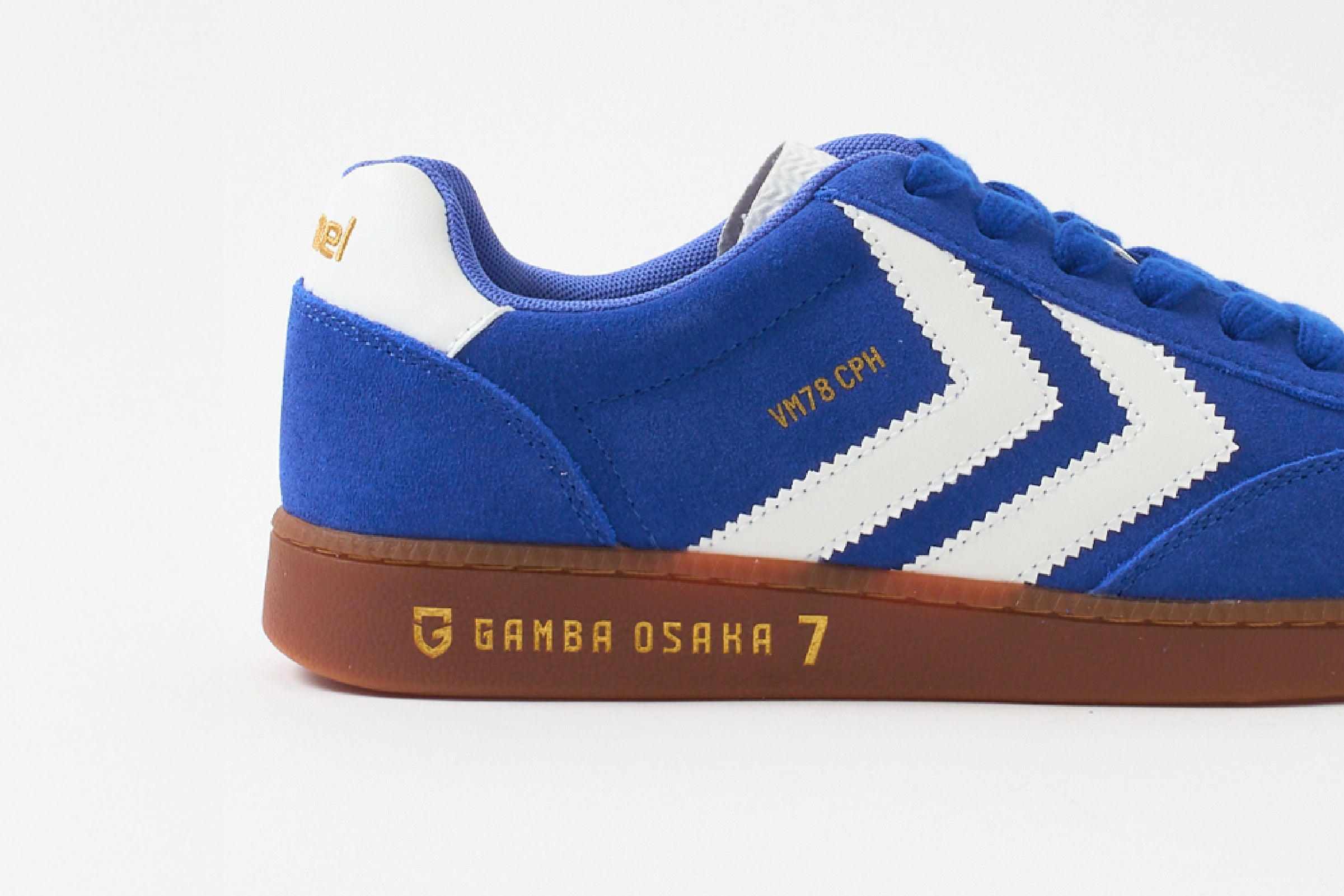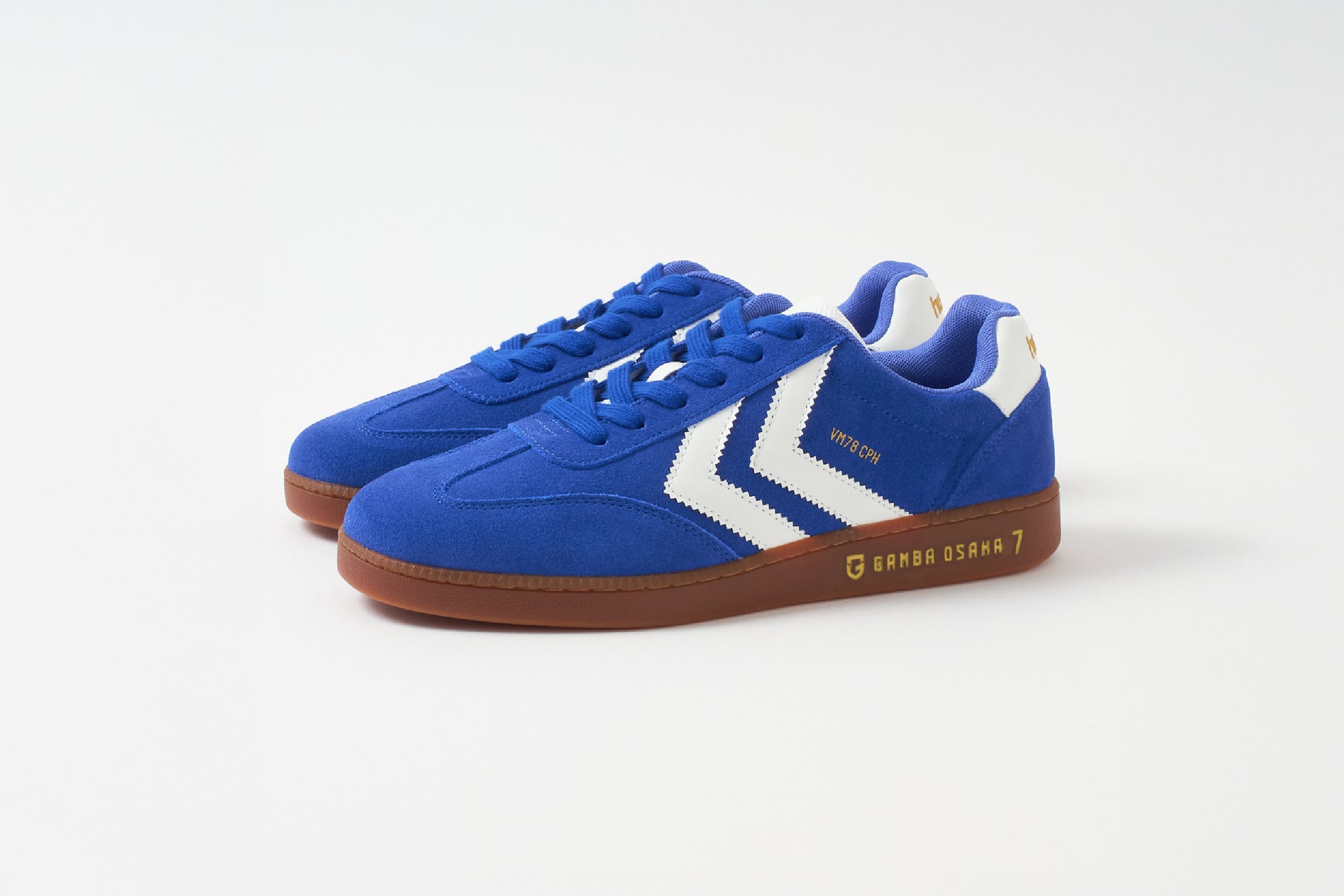 ガンバ大阪×ヒュンメル限定シューズをこの春もリリース。ベースのアイテムは今季注目のレトロスポーツスタイルを現代的にアップデートした「VM78 CPH」。ストリート感漂うデザイン、ブルーカラーにホワイトのシェブロンを効かせた配色は、試合観戦にはもちろん、普段にもコーディネートしやすいアイテムです。