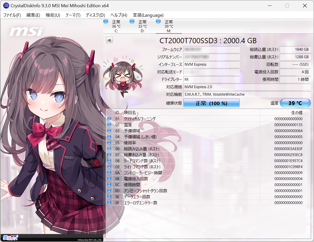 ●「CrystalDiskInfo」「CrystalDiskMark」に特別コラボレーションデザイン「MSI Mei Mihoshi Edition」登場!
