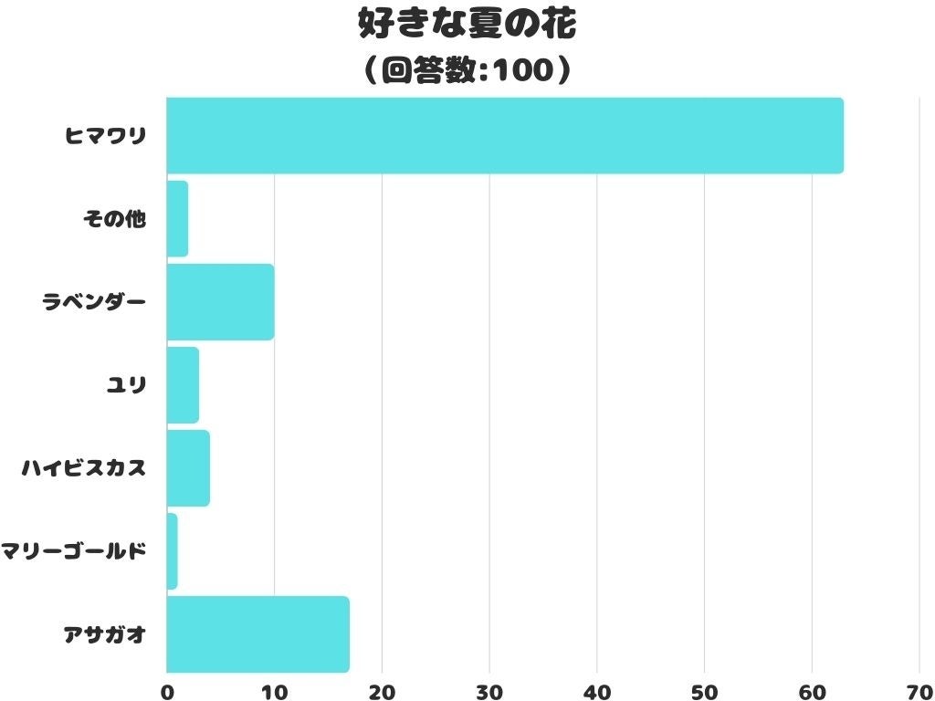 100人にアンケートを行ったところ、「ヒマワリ」と回答したのは全体の63.0%でした。
