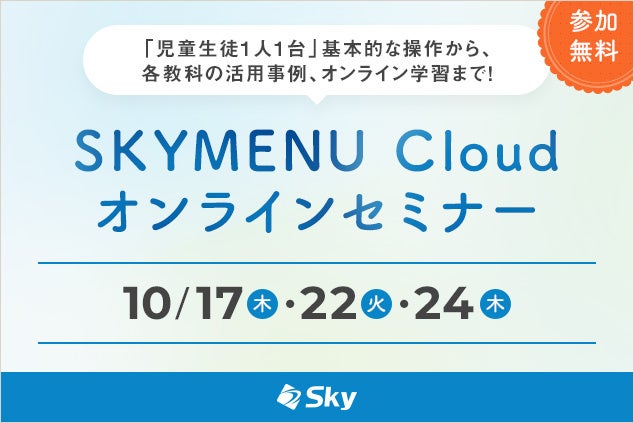 Sky株式会社では、児童生徒1人1台の学習活動端末支援Webシステム「SKYMENU Cloud」の基本的な使い方や教科指導、オンライン学習における活用例のご紹介など、毎月複数のテーマを設けてオンラインセミナーを開催しています。
