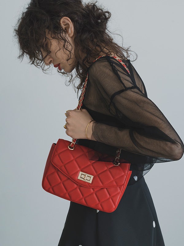 キルティングチェーンショルダーバッグ / RED