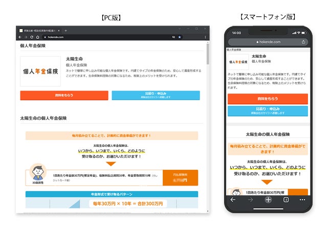 保険選びサイト「保険市場」に掲載を開始した太陽生命の『個人年金保険』は、インターネットでお申し込みいただける保険商品です。「保険市場」PCサイトおよびスマートフォンサイトにて、商品の詳細をご確認いただけます。