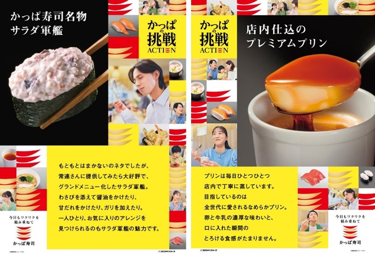 かっぱ寿司では、「かっぱの挑戦ACTION」と題し、お客様とともに歩む“ワクワク”とこだわりへの挑戦を、わかりやすく、親しみやすくお伝えしています。私たちは、お客様にとって最も身近で、最も頼れる「みんなのクリエイティブレストラン」でありたいと考えています。このこだわりを知っていただくことで、日々のお食事がさらに楽しく、彩り豊かな“ワクワク”が積み重なるひとときとなることを願っています。
