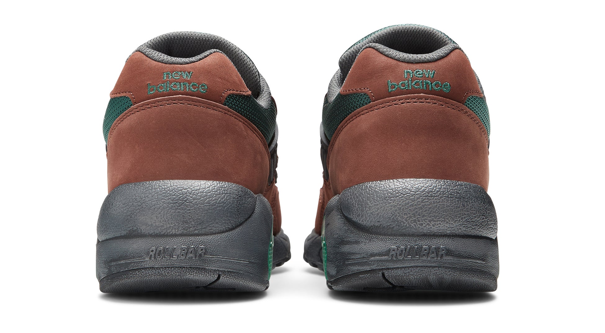 当時搭載されていた安定性をもたらす「ROLLBAR(ロールバー)」をミッドソールに搭載。ラストはニューバランスのスタンダードな「SL-1」ラストに変更され、過去の「580」よりスリムな印象に。今回のニューカラーは、アッパーは、ヌバックとメッシュ素材のコンビネーションで、深みのあるグリーンとブラウンがヴィンテージ感を漂わせます。
