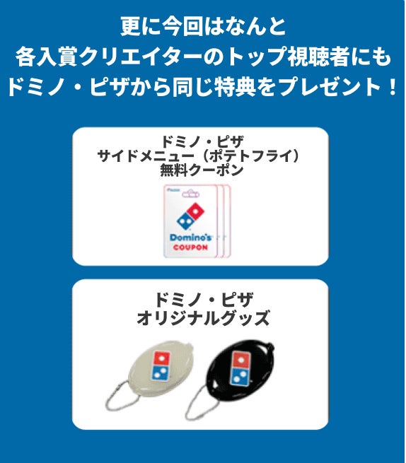 更に今回はなんと各入賞クリエイターのTop視聴者にもドミノ・ピザから特典をプレゼント!