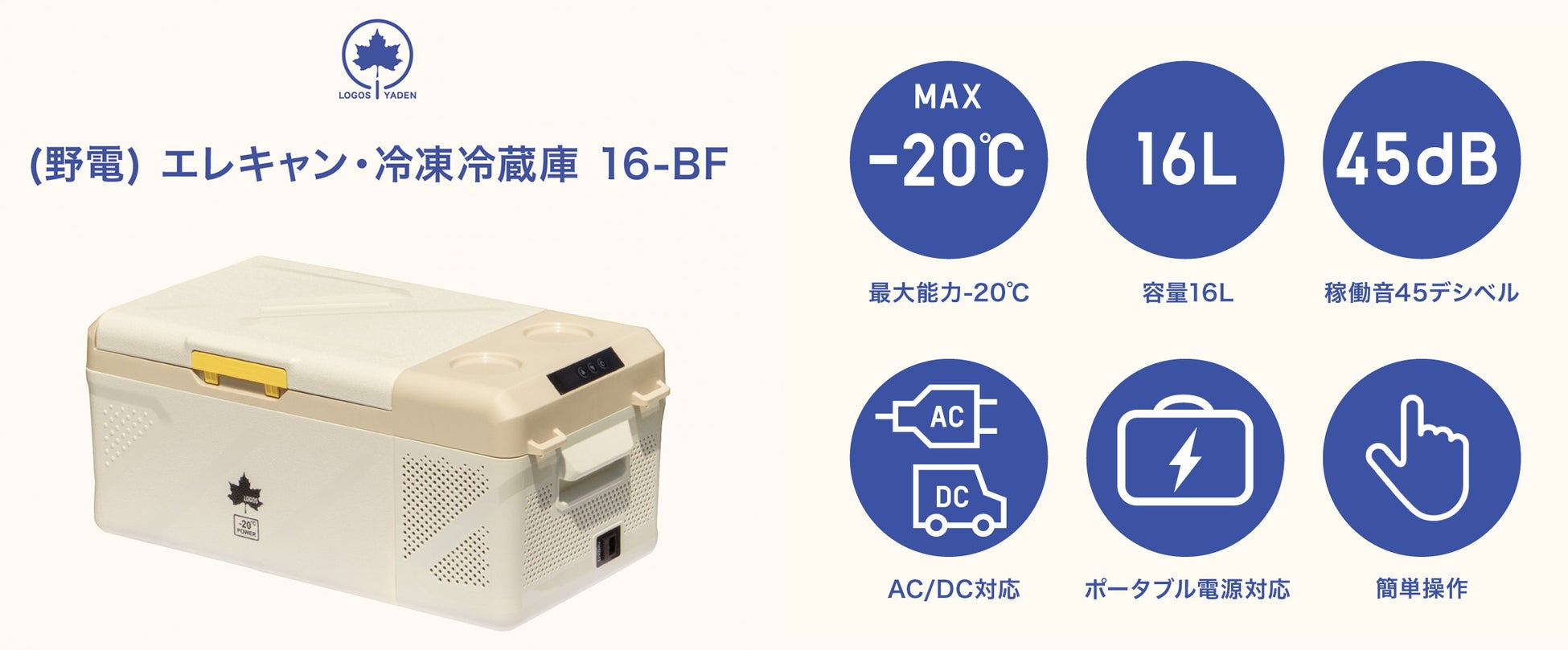 株式会社ロゴスコーポレーション(本社:大阪市住之江区、代表取締役社長:柴田茂樹)が展開するアウトドアブランドの「LOGOS」は、最大-20℃まで冷却可能なコンパクトサイズのポータブル冷凍庫「(野電) エレキャン・冷凍冷蔵庫 16-BF」を国内最大級のクラウドファンディング「CAMPFIRE(キャンプファイヤー)」にて、2025年5月30日(金)から6月20日(金)まで先行販売いたします。