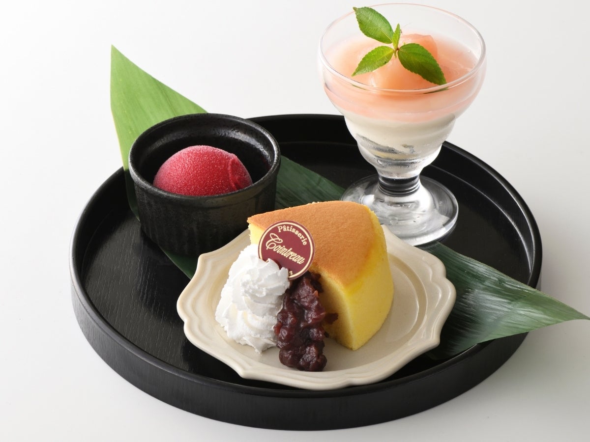 ・デザート盛り合わせ(台湾カステラ・白桃のパンナコッタ・カシスシャーベット)