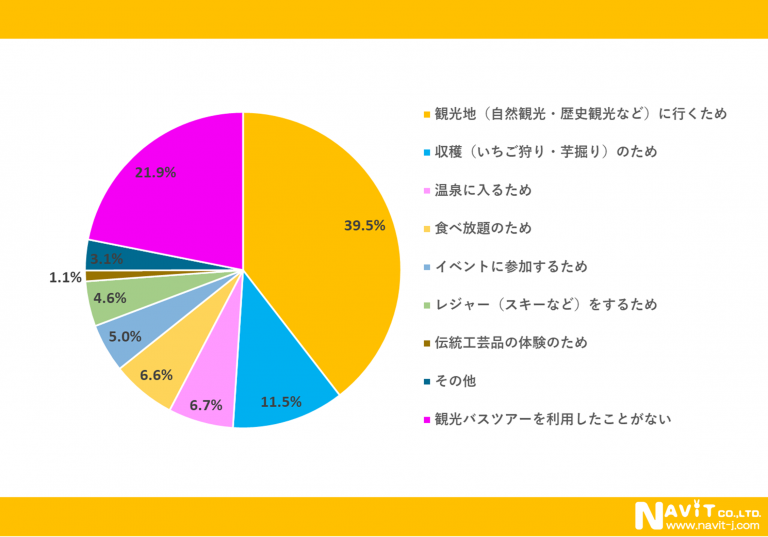- 観光バスを利用する目的は、「観光地に行くため」が最多