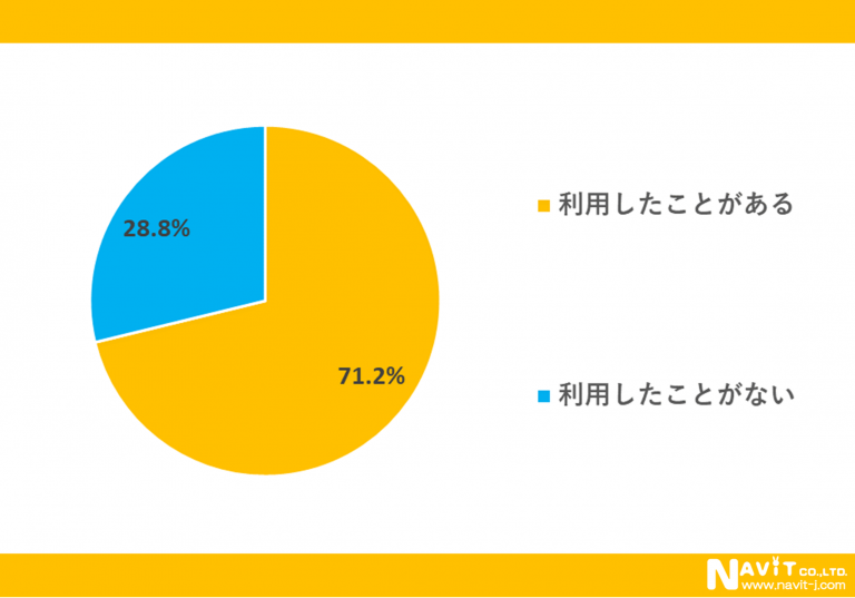 観光バスを利用したことがあるかどうかについては、「利用したことがある」が71.2%、「利用したことがない」が28.8%という結果になり、約7割の人が観光バスを利用したことがあると分かりました。
