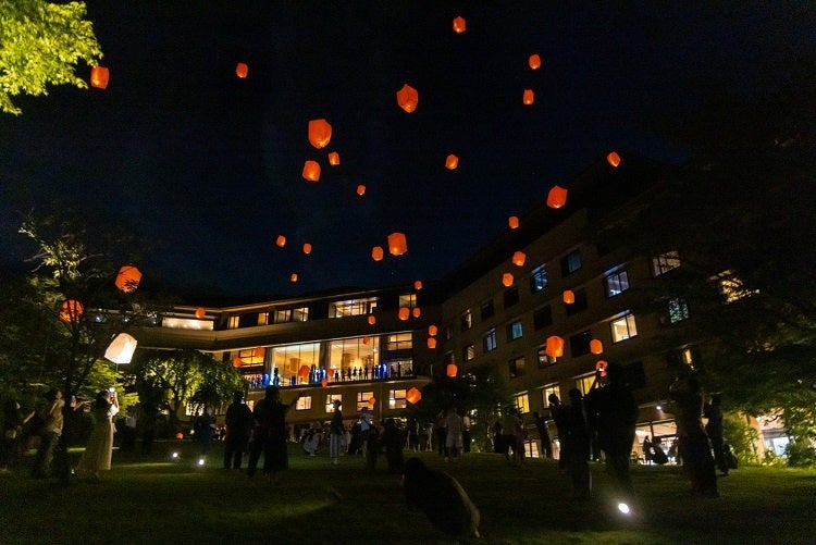 ②庭園で開催される「ランタンナイト」の打ち上げ体験 ランタン1室1個付き