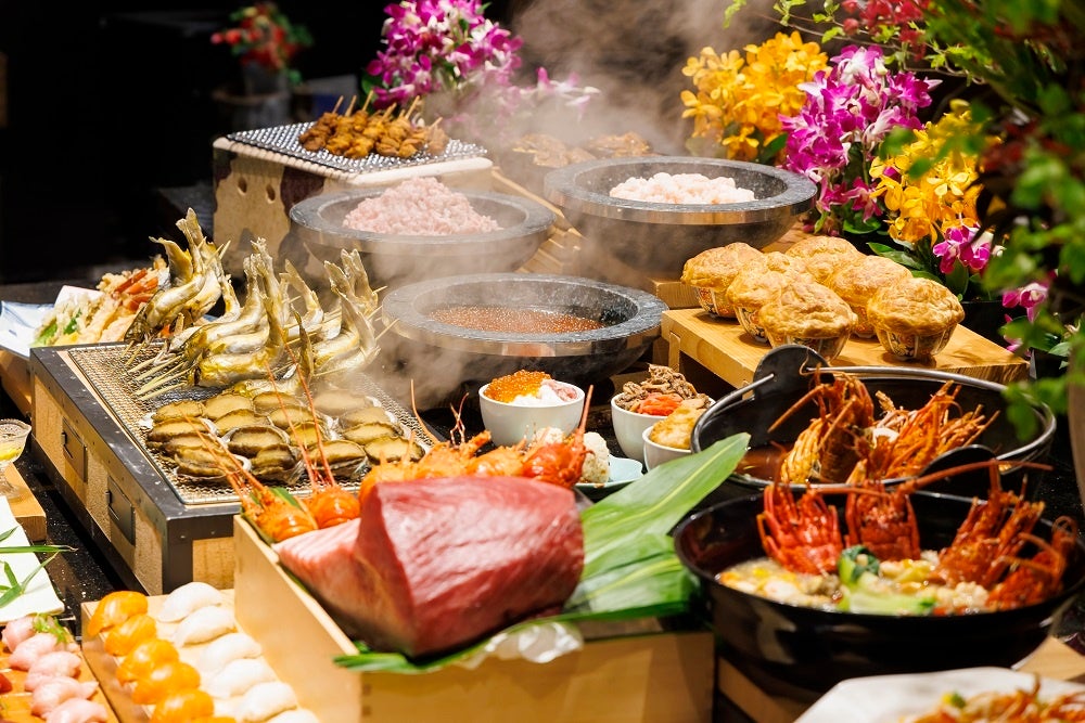 ①当日のランチ・ディナー、翌日の朝食・ランチと食べ放題・飲み放題のビュッフェが最大4食!