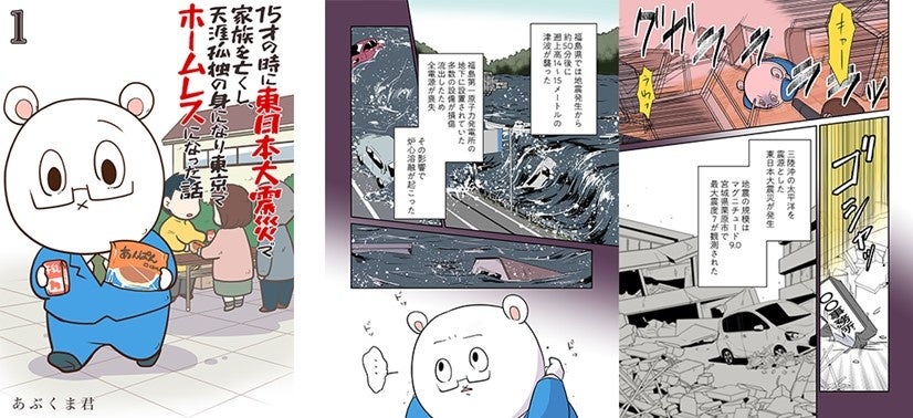 2011年3月11日。日本中が大混乱に陥った東日本大震災でたった15歳の少年は家族・親戚全てを失った…。中学生にして天涯孤独の身になった少年は、故郷を捨てて上京することを決意する。そして東京で少年が出会ったのはまさかのホームレス!? SNSで超話題!! 「あぶくま君」の波瀾万丈な震災後の生活を描いたTwitter漫画がついに連載に—!