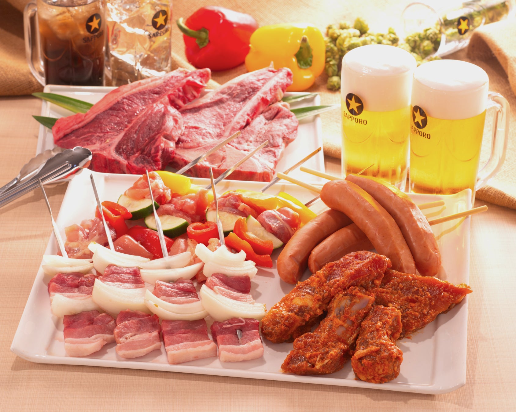 〈内容〉Tボーンステーキ/室蘭串/粗びきポークフランク/骨付きポークリブ/チキンBBQ串