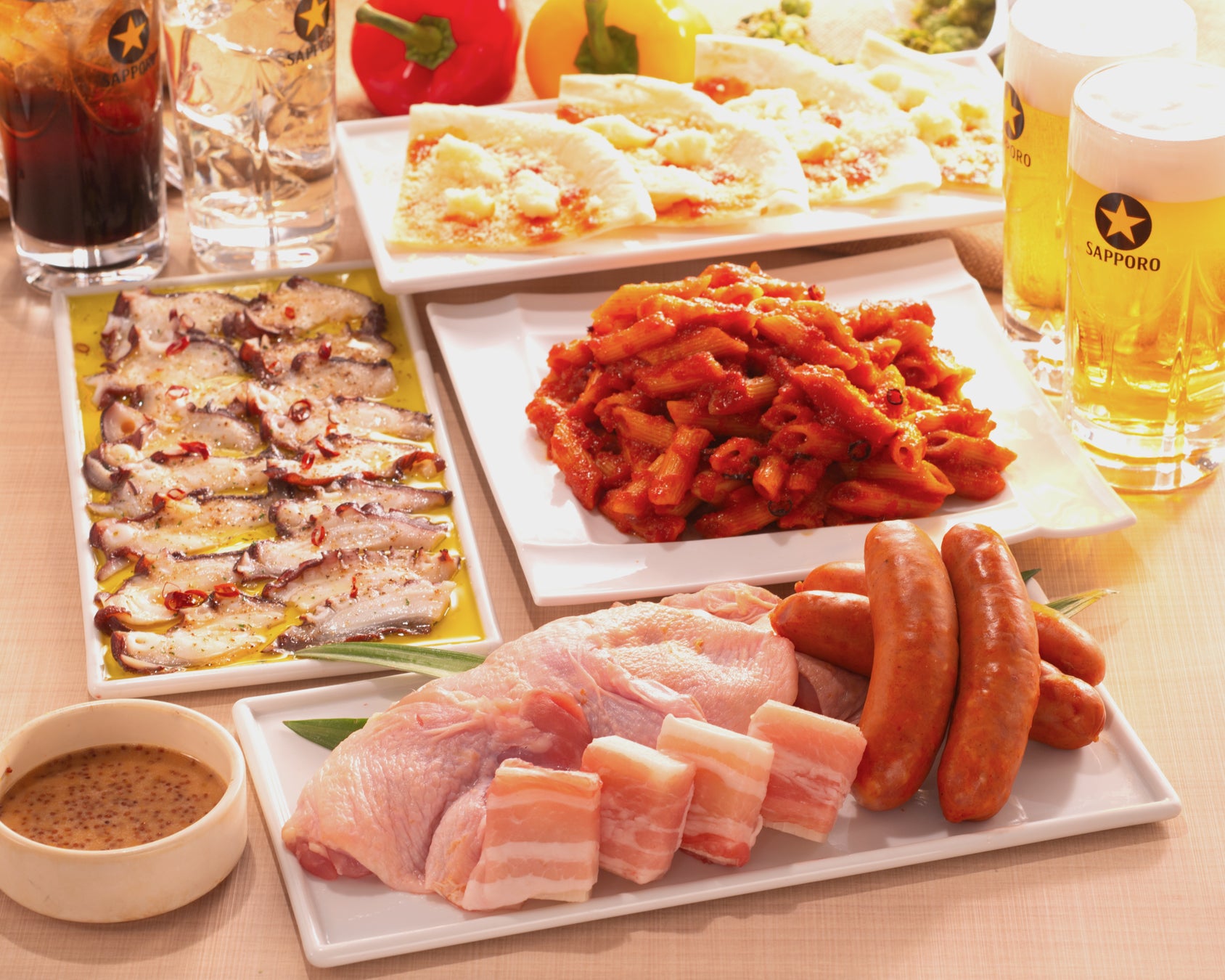 〈内容〉チキンBBQ/メキシカンチョリソー/切り餅豚バラ巻/PIZZAモッツァレラ/水タコ/ペンネアラビアータ