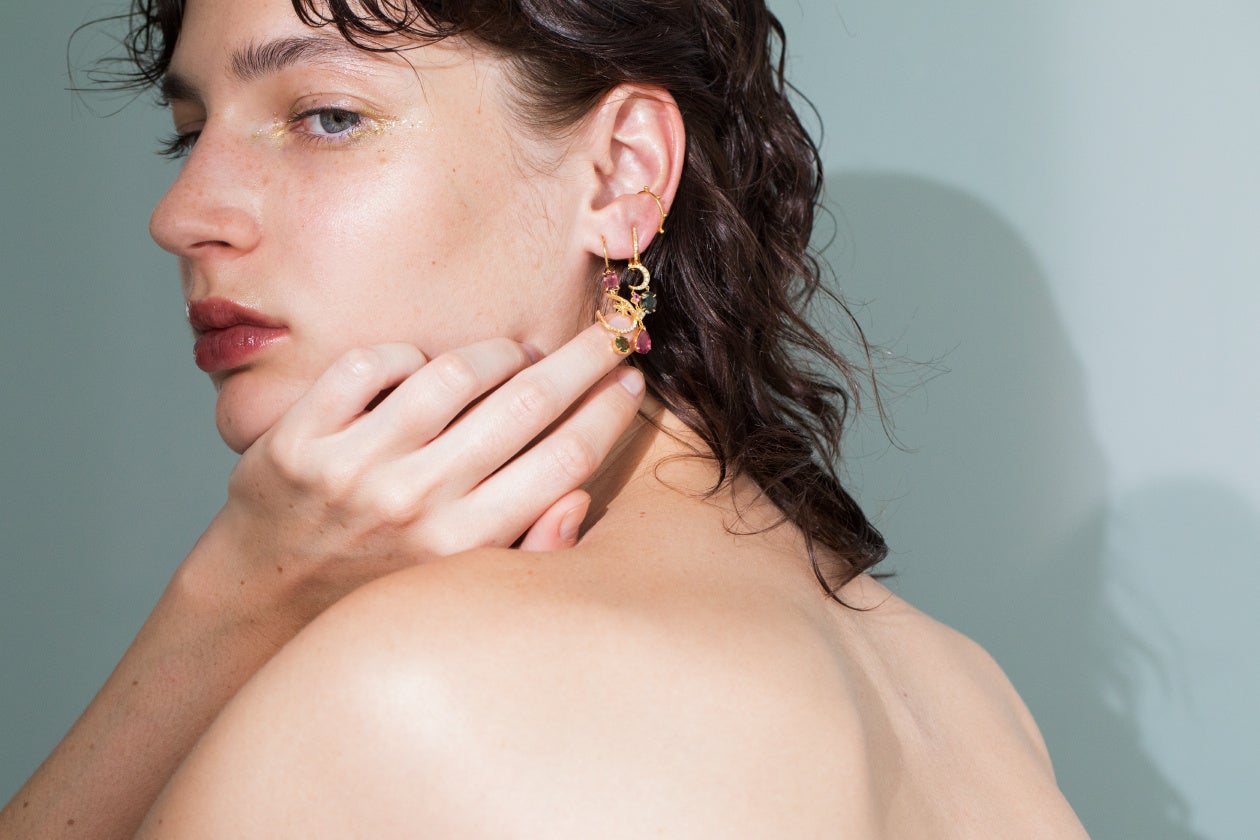 11月14日 (月) からは、カラフルでまばゆい輝きを放つトルマリンを連ねたシャンデリアピアスとイヤリングを一点ものでご用意しました。アドベントカレンダーを開くときの高揚感をお届けしたいという気持ちを込めて、14日 (月) より5日間にかけて、1デザインずつ発売いたします。
