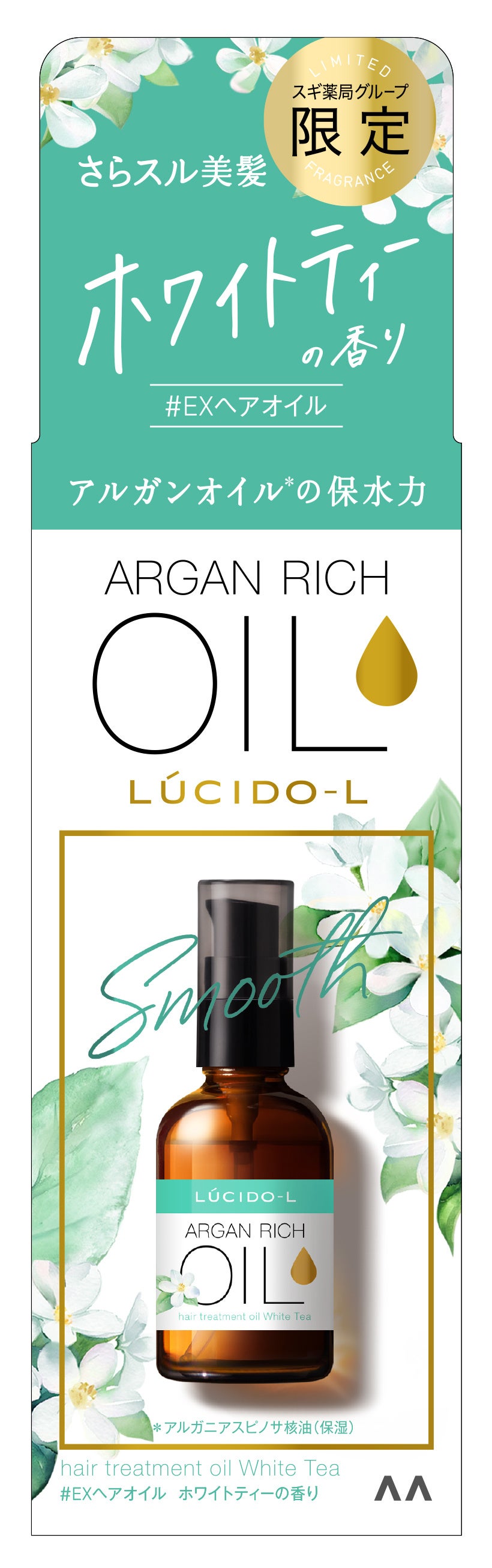 シリーズ累計出荷1,800万本突破※1のアルガンリッチオイルシリーズから「ホワイトティー」の香りがスギ薬局グループ限定で登場 ルシードエル オイルトリートメント #EXヘアオイル ホワイトティーの香り