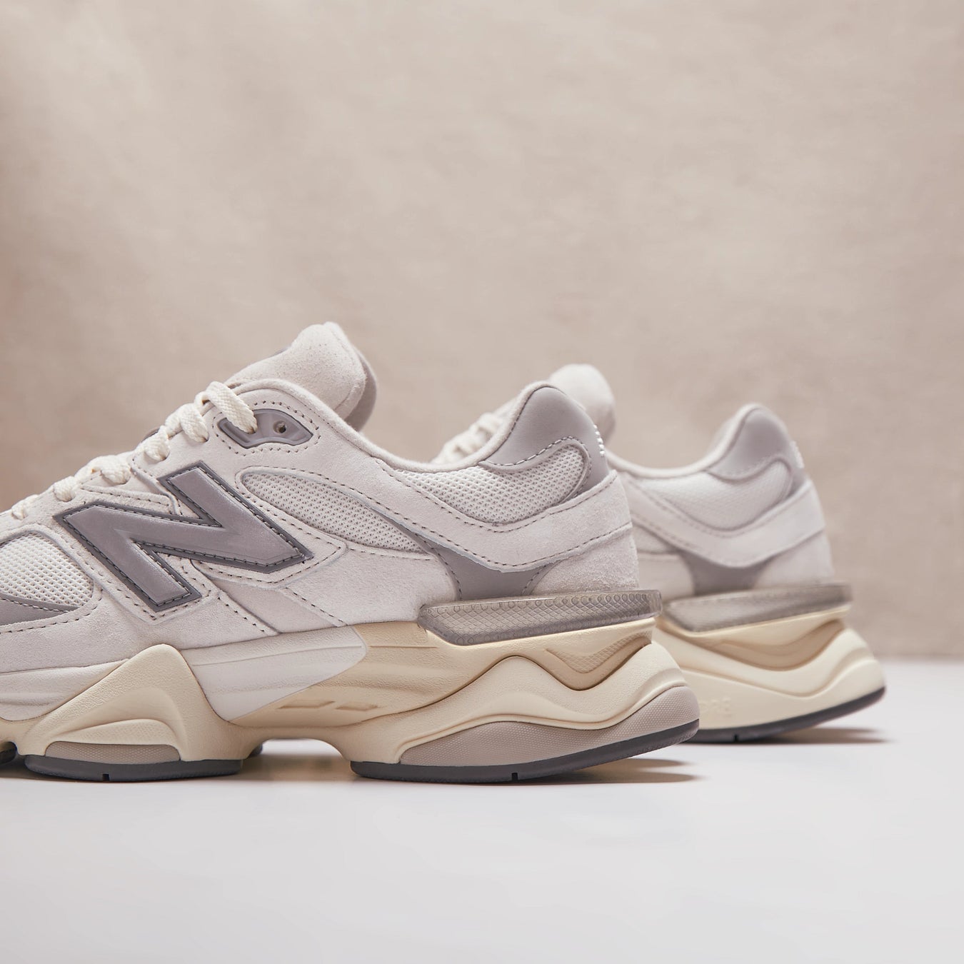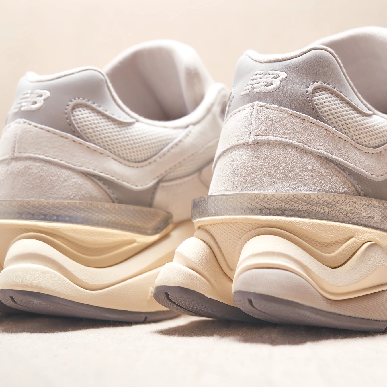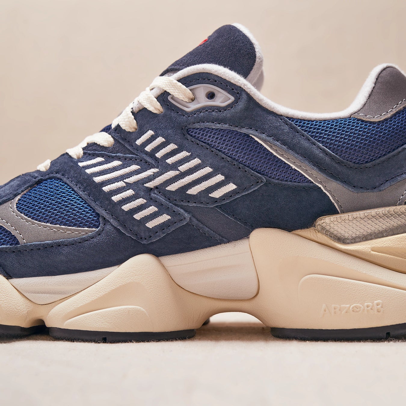昨年7月にライフスタイルのニューモデルとして登場した「90/60(ナインティシックスティ)」は、ニューバランスのフラッグシップモデルとしてブランドを代表する900番台と、2000年台初頭のランニングシューズ「860」からインスピレーションを受け、これまでのフットウェアで親和性のある要素を活かしながら、よりモダンで表現力豊な新たなスタイルへと昇華させています。内外で異なるデザインのNロゴや、インスピレーションの源となった各モデルをより誇張したミッドソールデザイン、そして新鮮なデザインだけでなく、ミッドソールに衝撃吸収素材ABZORB(アブゾーブ)を搭載し、履き心地もグレードアップしています。