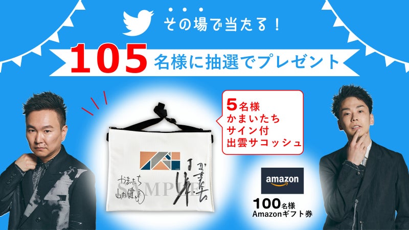 ②#かまいたちと出雲大社巡りをつけて投稿 していただいた方に「5名様にかまいたちのサイン付き出雲サコッシュ」「100名様にAmazonギフト券100円分」がその場で抽選で当たるキャンペーン。