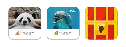 コラボを記念して、「giftool【宝箱】」に動物たちが飛び出すアドベンチャーワールドオリジナルデザインが登場!