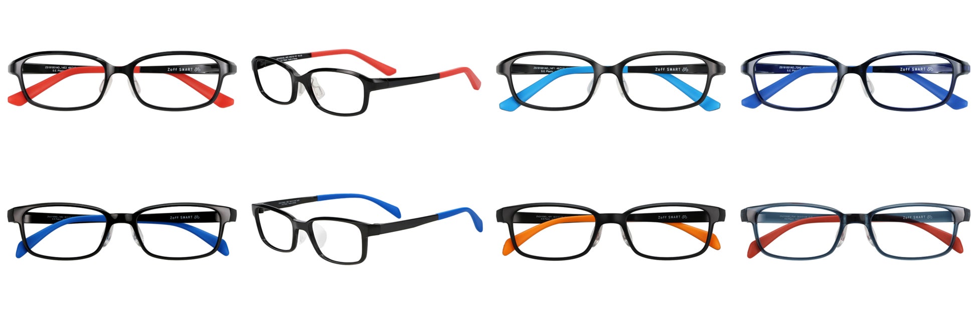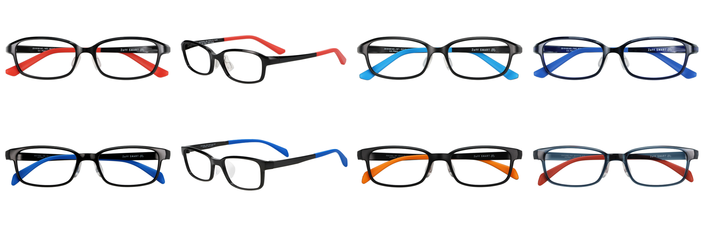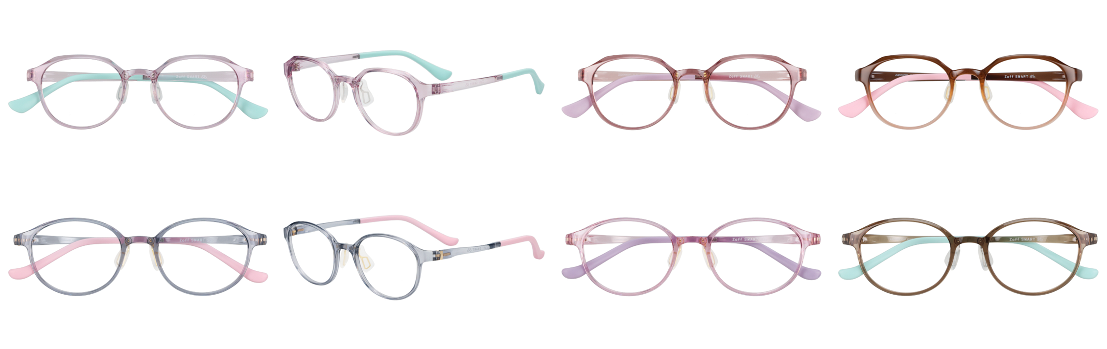 子どもの顔にも軽やかにフィットするZoff SMART Kidsの人気型に、より子どもらしいカラーをまとった新色が登場。肌なじみのよいクリアカラーに春らしいパステルカラーを取り入れたボストン型と、ブラックやネイビーの定番色にスポーティーカラーを効かせたスクエア型で展開します。初めてのメガネにもおすすめの、思わず手に取りたくなるデザインです。
