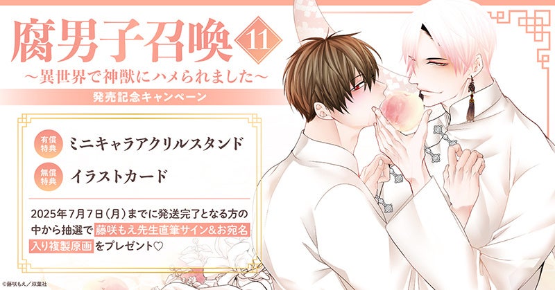 直筆サイン入り複製原画が当たる!藤咲もえ先生『腐男子召喚~異世界で神獣にハメられました~(11)』発売記念キャンペーン開催!【ホーリンラブブックス】
