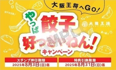 株式会社大阪王将(東京ヘッドオフィス:東京都品川区 代表取締役社長:文野幸司)が展開する餃子専門店「大阪王将」は、2025年4月30日(水)から8月3日(日)まで、「大阪王将へGO!やっぱ餃子好っきゃねん!」キャンペーンと題して、店舗で餃子をもっと楽しめるキャンペーンを全国の大阪王将店舗にて開催いたします。