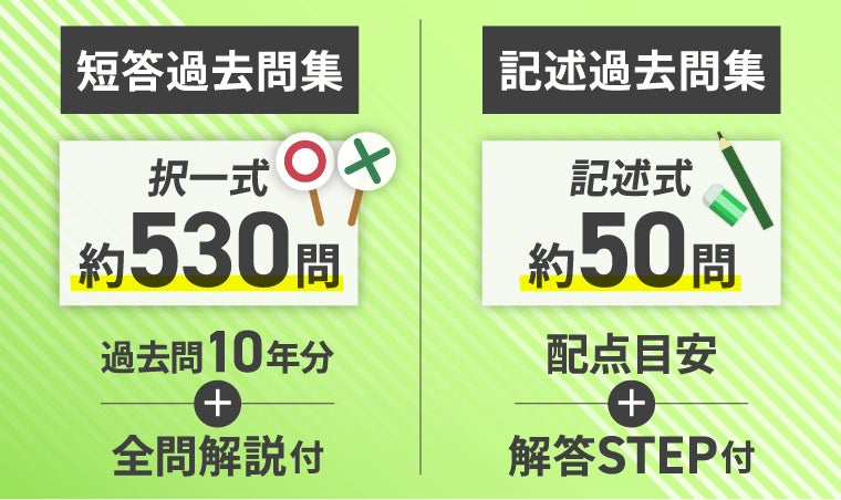 過去問は体系別に択一式約530問、記述式約50問を収録!