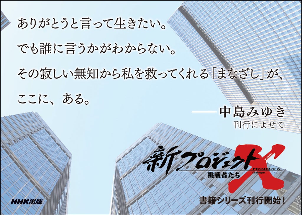 「新プロジェクトX 挑戦者たち」の主題歌「新・地上の星」とエンディング「ヘッドライト・テールライト」の作詞・作曲を手掛ける中島みゆきさんのコメント入りポップを作成。『新プロジェクトX 挑戦者たち1』とともに全国の書店に並びます。