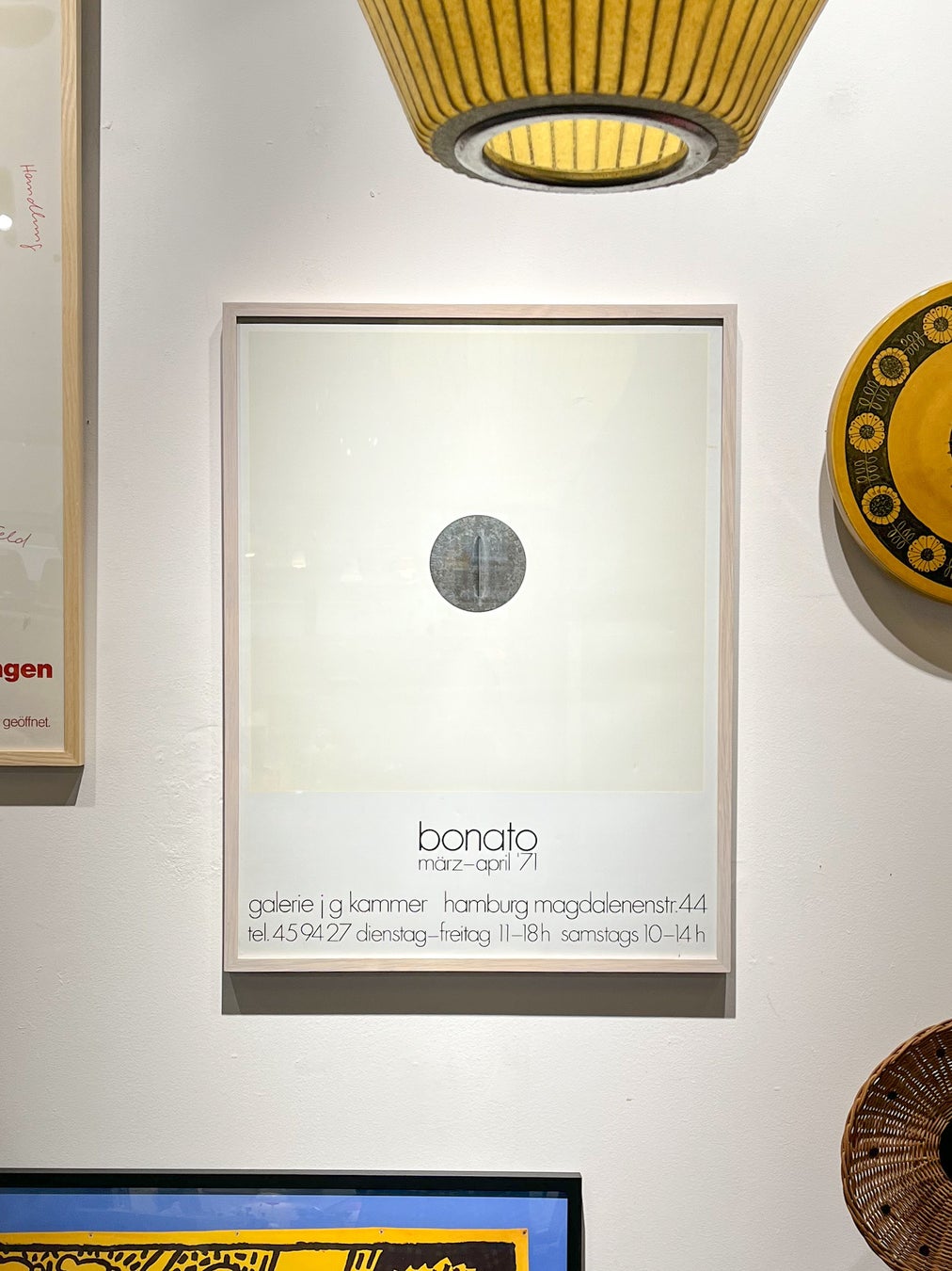 1971年3月から4月にかけて、ドイツ・ハンブルクのギャラリー「Galerie J.G. Kammer」で開催された彼の個展のために制作されたエキシビション・ポスター。ポスター中央に描かれているのは、彼の代表的なスタイルである「鏡の変形(Mirror Deformation)」シリーズの一つ。