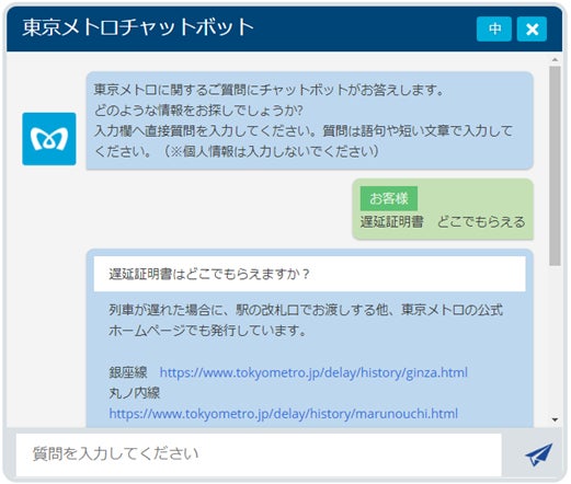 「東京メトロチャットボット」の詳細