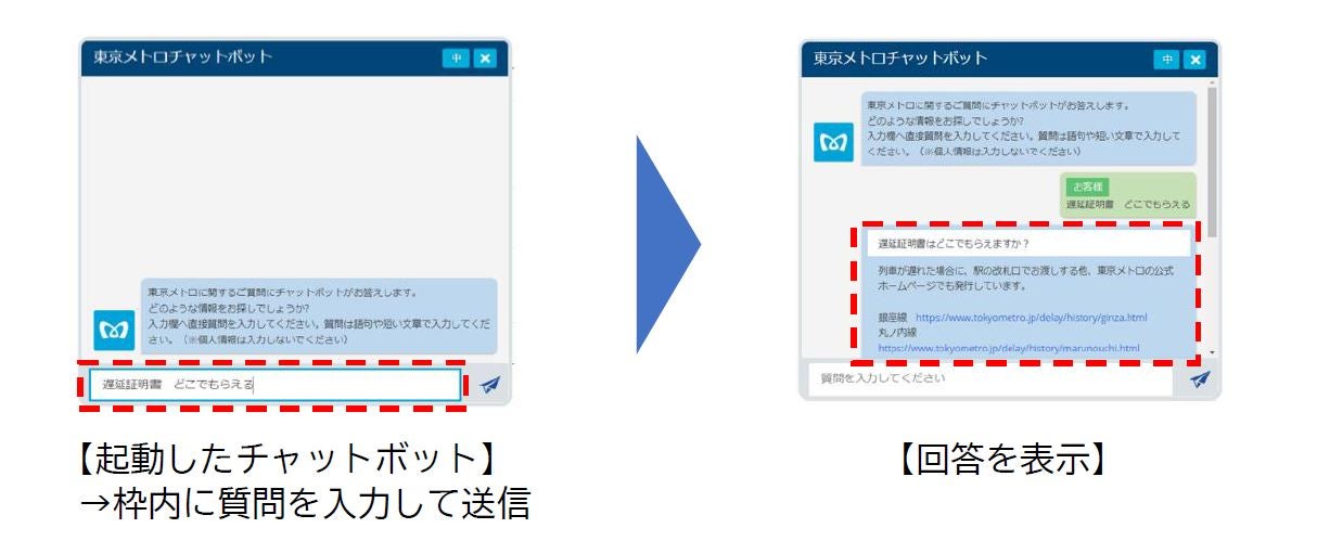 「東京メトロチャットボット」の詳細は以下のとおりです。
