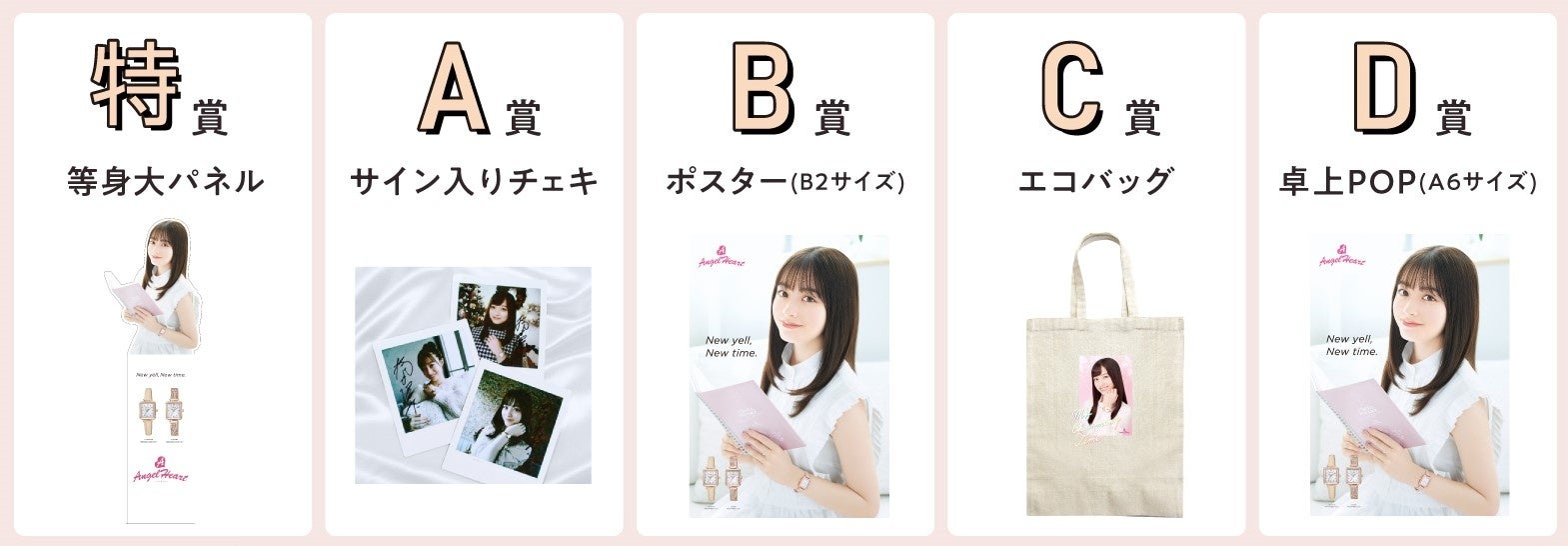 | ①エンジェルハート非売品グッズ 特賞:等身大パネル A賞:サイン入りチェキ B賞:ポスター C賞:エコバッグ D賞:卓上POP |
