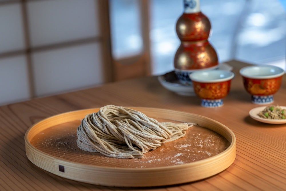 メインの「からすみ蕎麦」は、打ちたての蕎麦と古来の技術で仕立てた自家製のからすみを味わえる逸品です。また、季節の蕎麦もお楽しみいただけます。