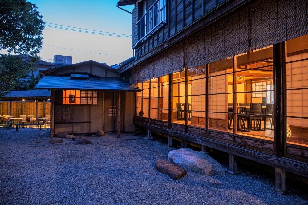 店舗は、4世代が暮らしていたという庭付きの木造2階建ての家屋で、波打ちガラスや、彫りが美しい欄間など、築100年の味わいがそこかしこに感じられ、落ち着いた雰囲気の中ゆったりと食事をお楽しみいただけます。