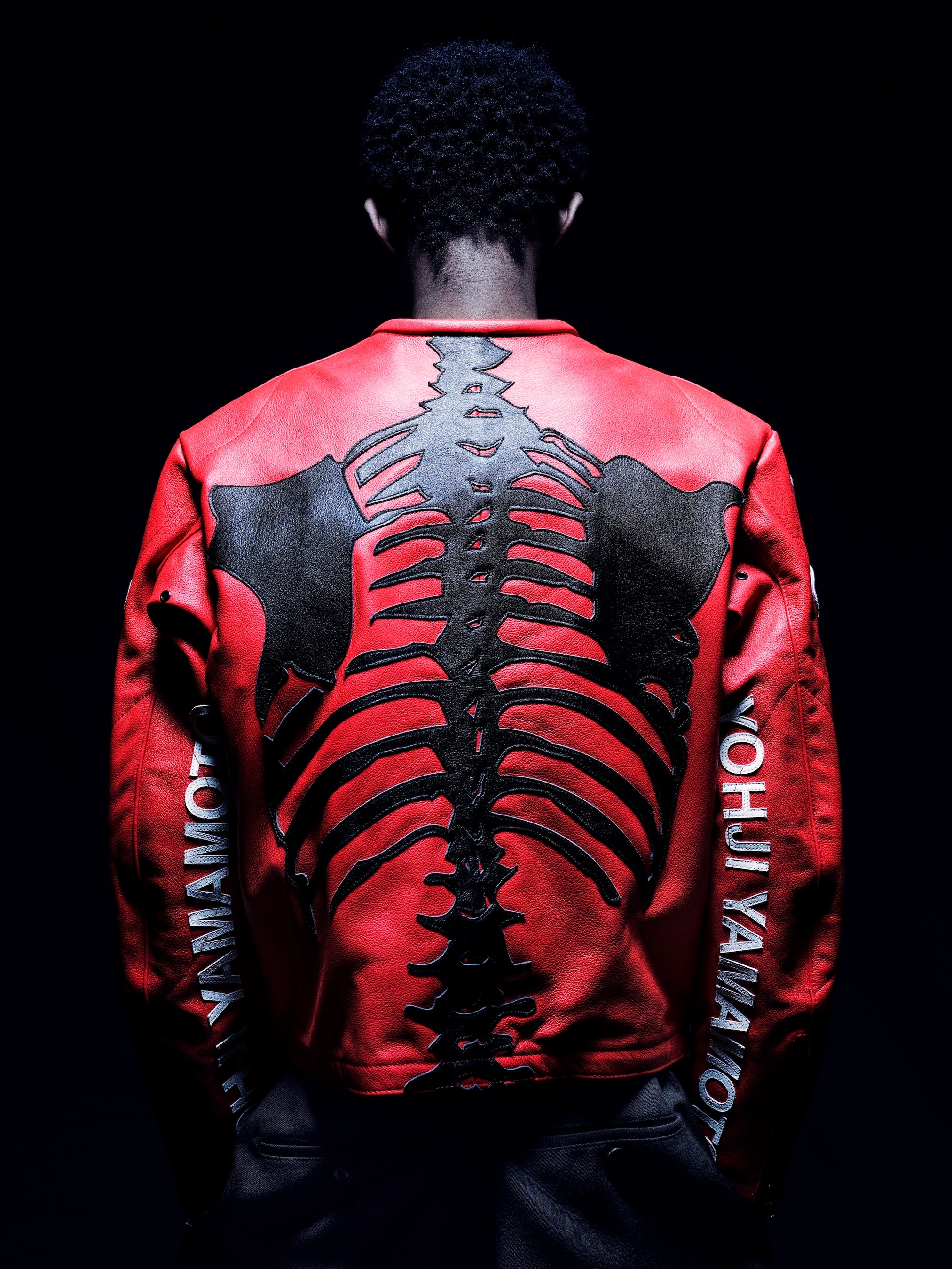 本コレクションでは、VANSONのクラシックなプロダクトをベースに、BONEデザインをYohji Yamamoto POUR HOMMEの視点から再構築したジャケット、バッグ、グローブを展開します。ジャケットはシングルライダースに立体的な骨モチーフのダブルレザーパネルを配置。カラーレスデザイン、フロントジップ、バックル、外ポケット、スリーブ肩位置のオーバルワッペンなどVANSON伝統の仕様を採用しています。BONE柄のトートバッグは、ハンドルの長さを調整し、フロント・バックパネルやレザーパッチの配置を変更した特別仕様。いずれのモデルにもBONEグラフィックとYohji Yamamotoのネームを施しています。ジャケットをご購入いただいた方には、限定ノベルティーとして、BONE TEE SHIRTをご用意しています。