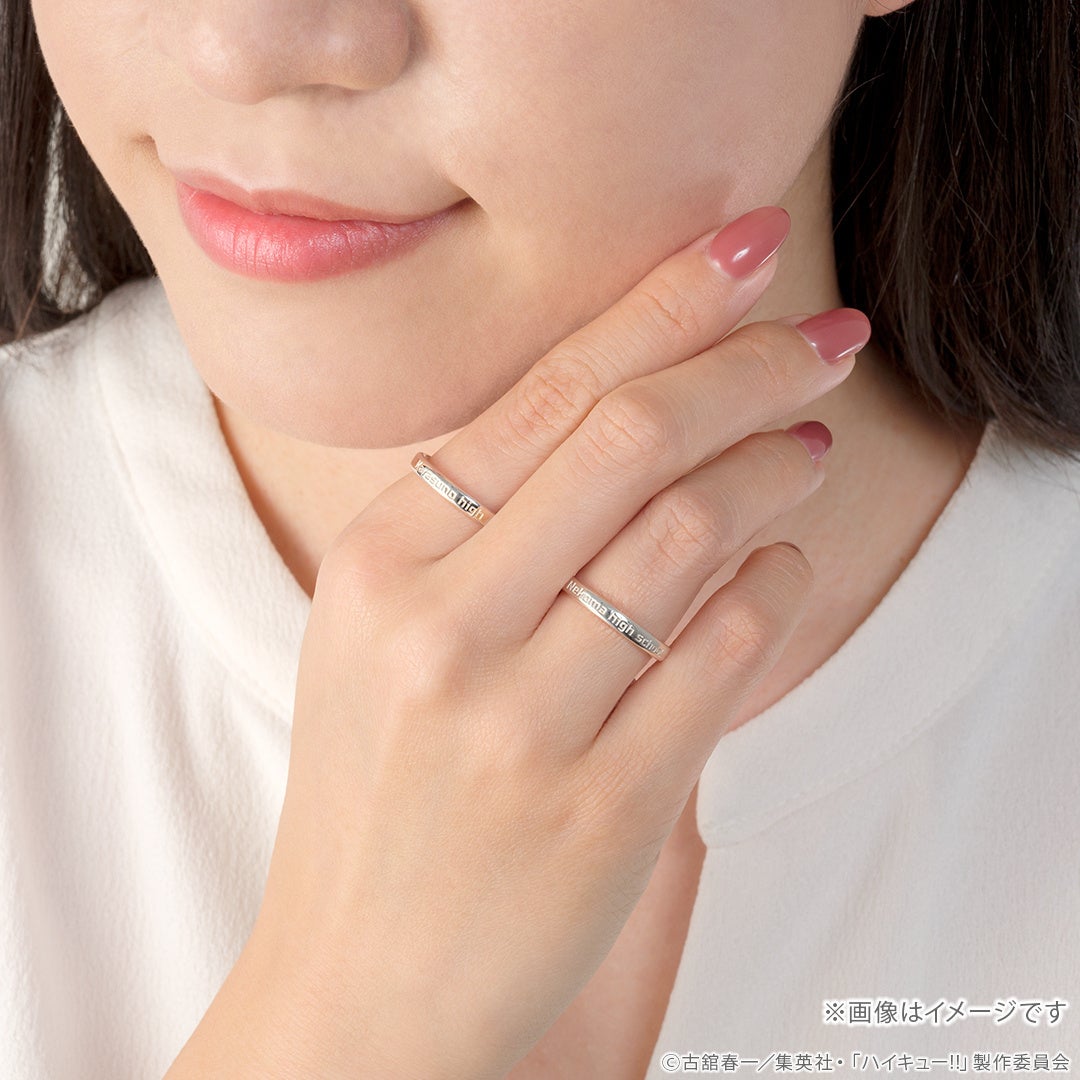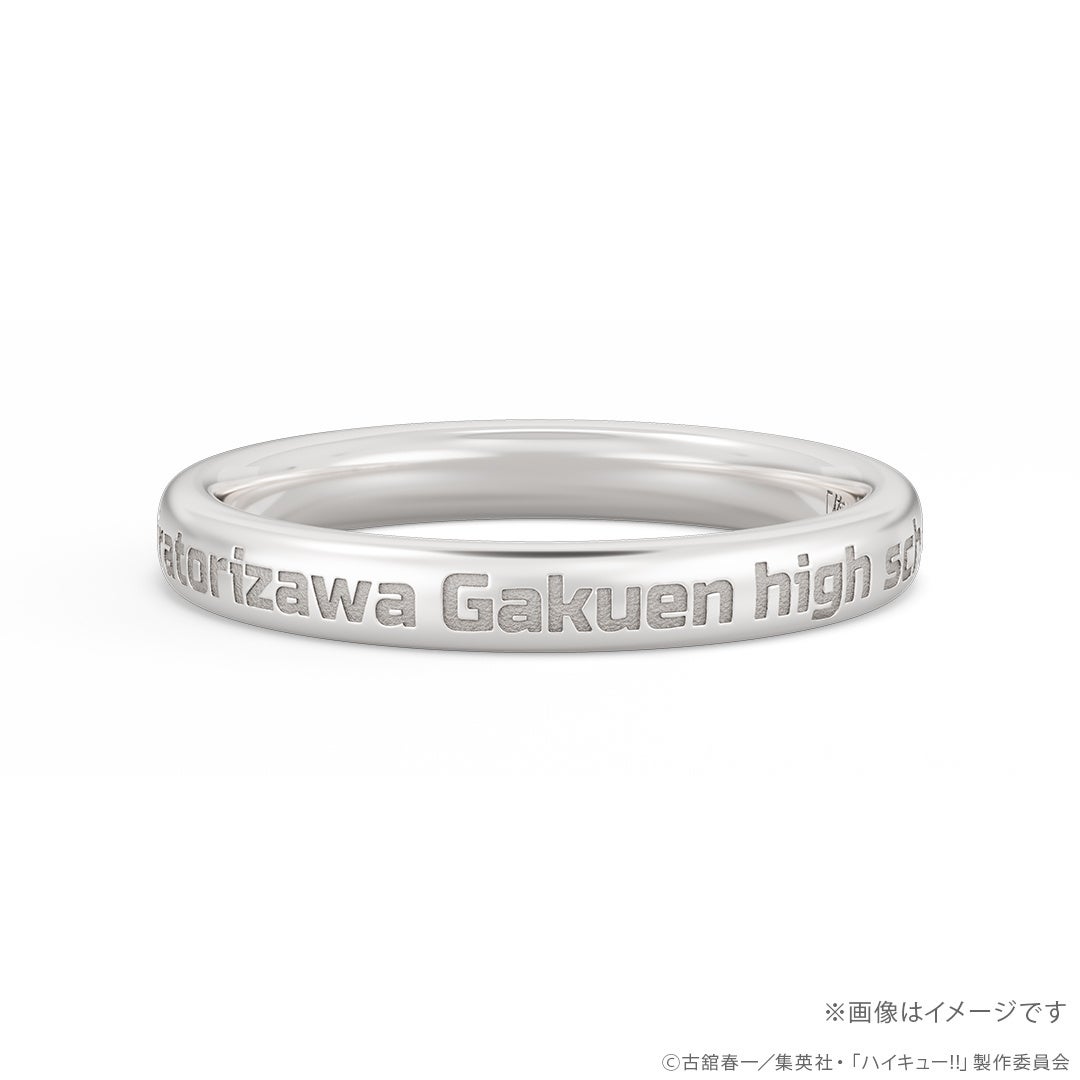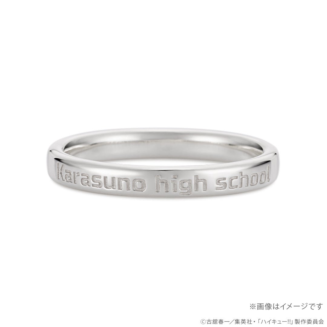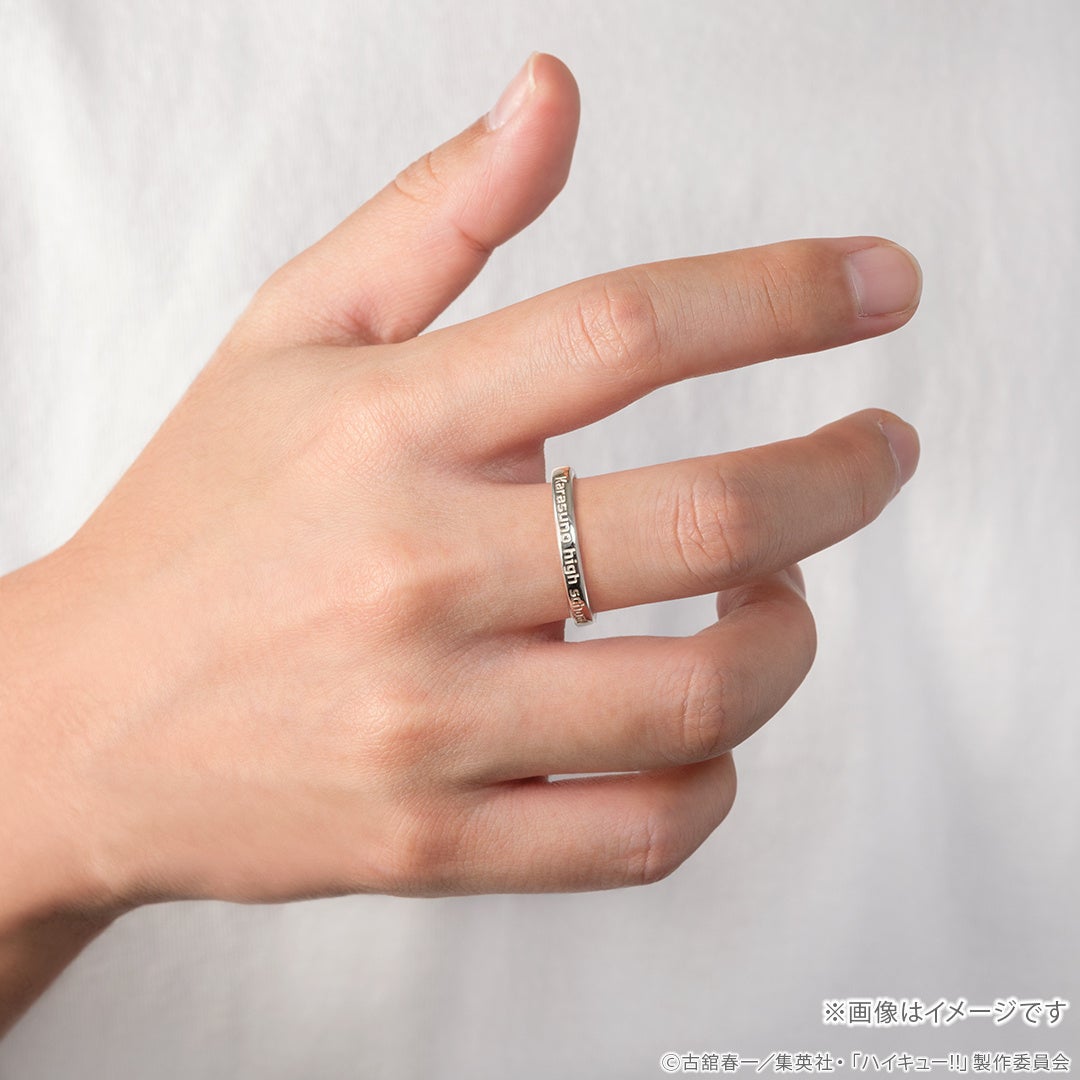 『烏野高校(Karasuno high school)』の校名をデザインしたリングの内側に、印象的なエピソードがよみがえる各キャラクターの名言を刻みました。
